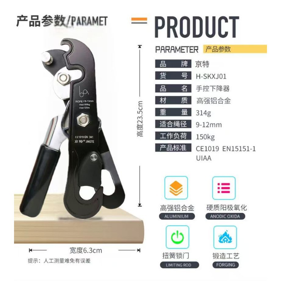 Jingte 야외 암벽 등반 하강 장치 고고도 하강 장치 수동 제어 내리막 장비 안전 로프 하강 장치 보호스토어 가기