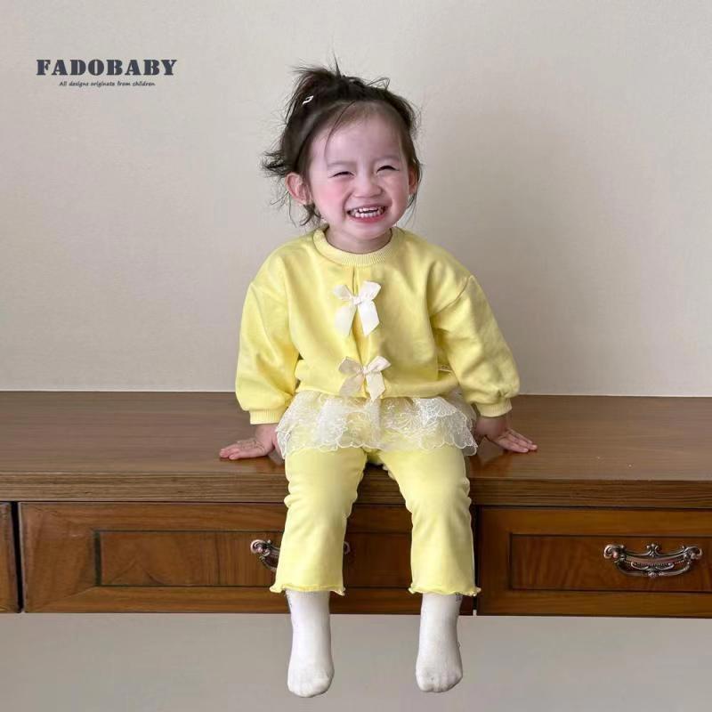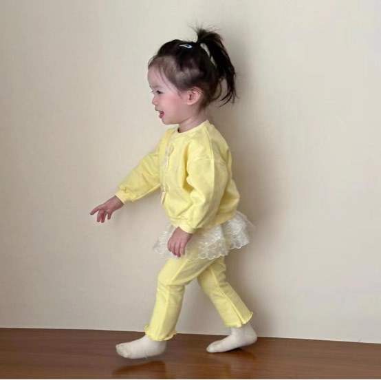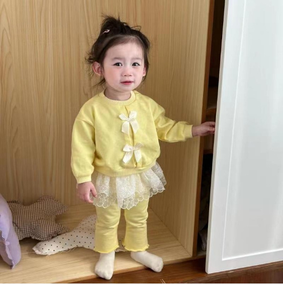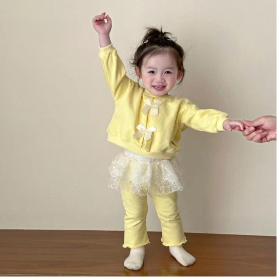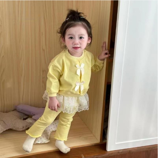 여자 세트 봄 새로운 한국 스타일 아기 소녀 활 긴 소매 땀 바지 스타일 아웃 투피스 세트