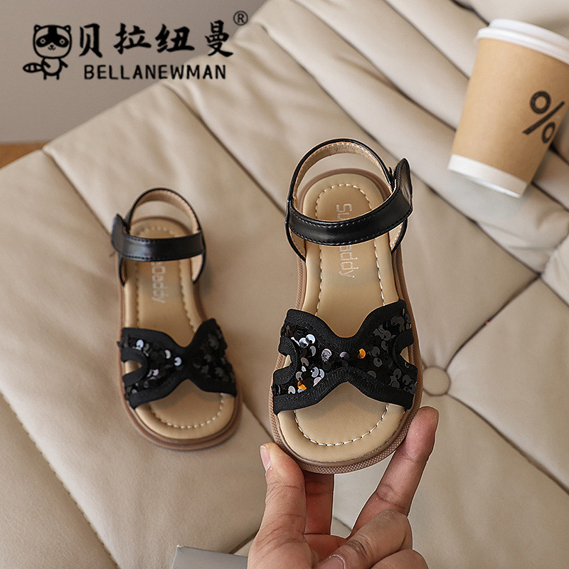 SHEIN 틈새 디자인 소녀 패션 세퀸 공주 샌들 2025 여름 새로운 어린이 소프트 단독 비치 신발스토어 가기