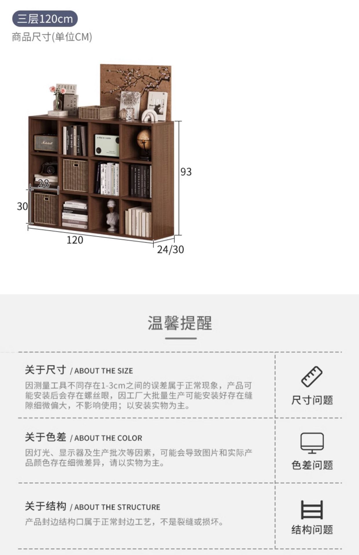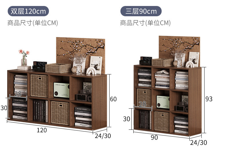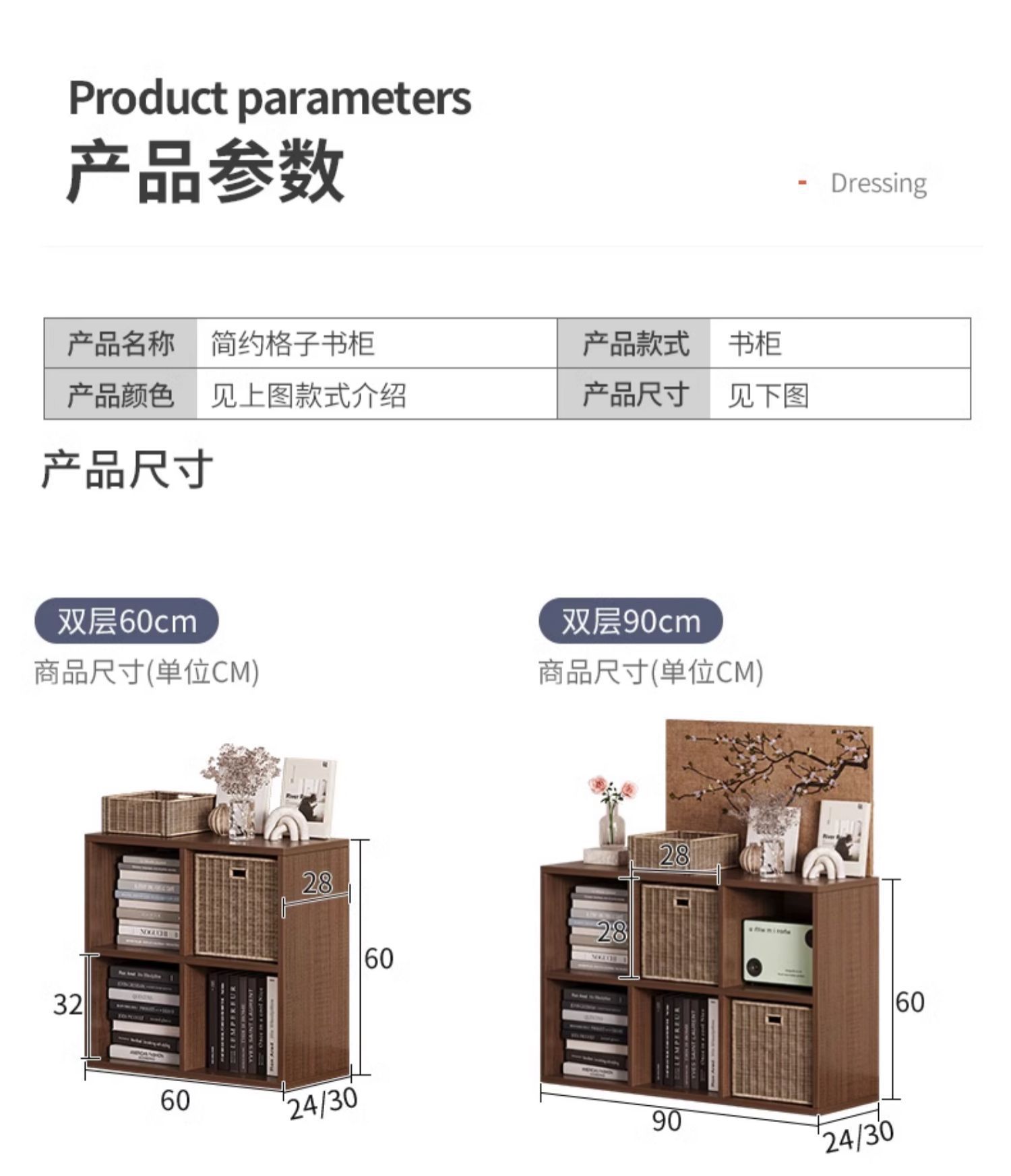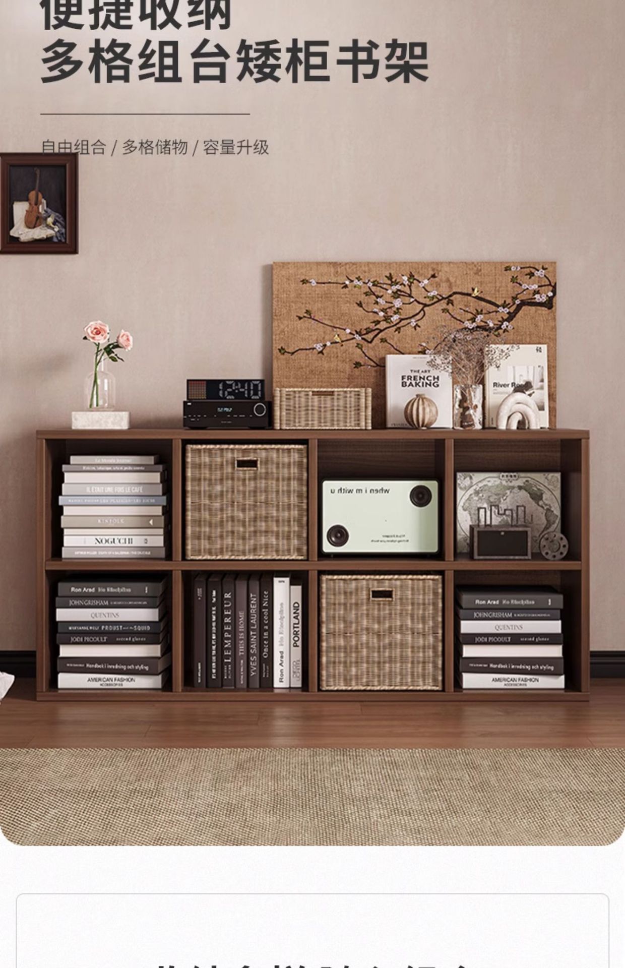 书架落地置物架简易书柜家用格子柜八格柜客厅矮柜子储物柜收纳柜