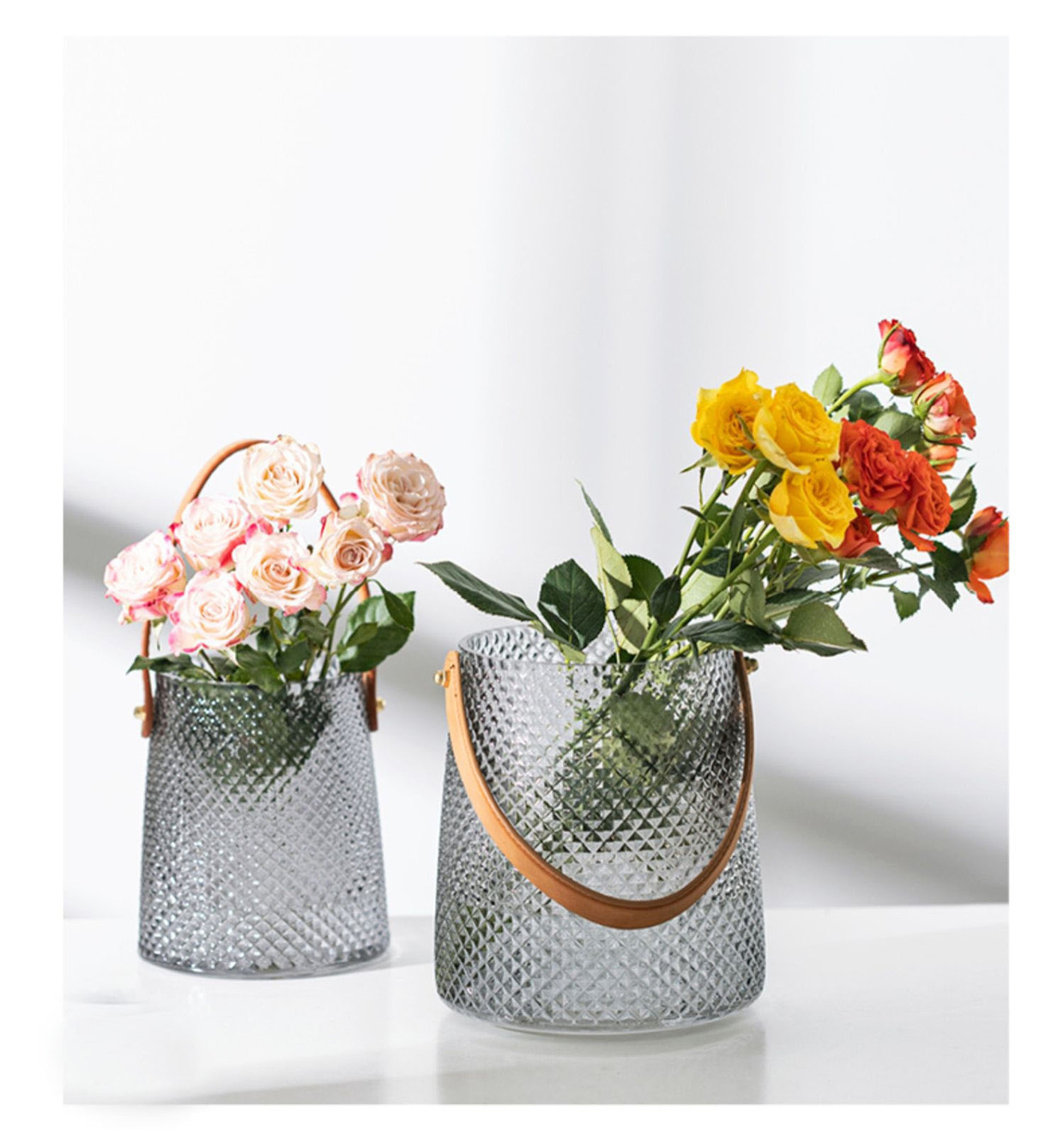 도매 가벼운 럭셔리 휴대용 유리 꽃병 간단한 수경 꽃 꽃꽂이 창조적 인 데스크탑 장식 호수 파랑