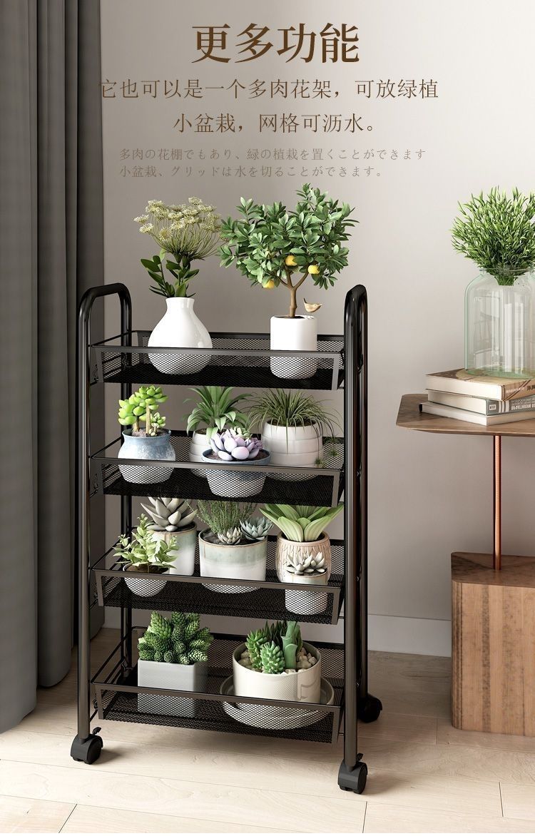 주방 보관 랙 바닥 다층 이동식 저장 랙 가정용 저장 카트 다기능 야채 및 과일 랙