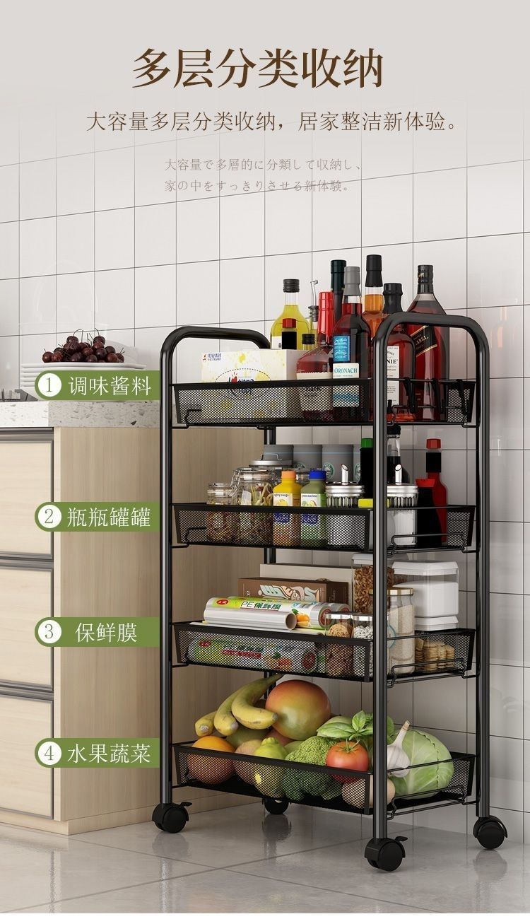 주방 보관 랙 바닥 다층 이동식 저장 랙 가정용 저장 카트 다기능 야채 및 과일 랙스토어 가기