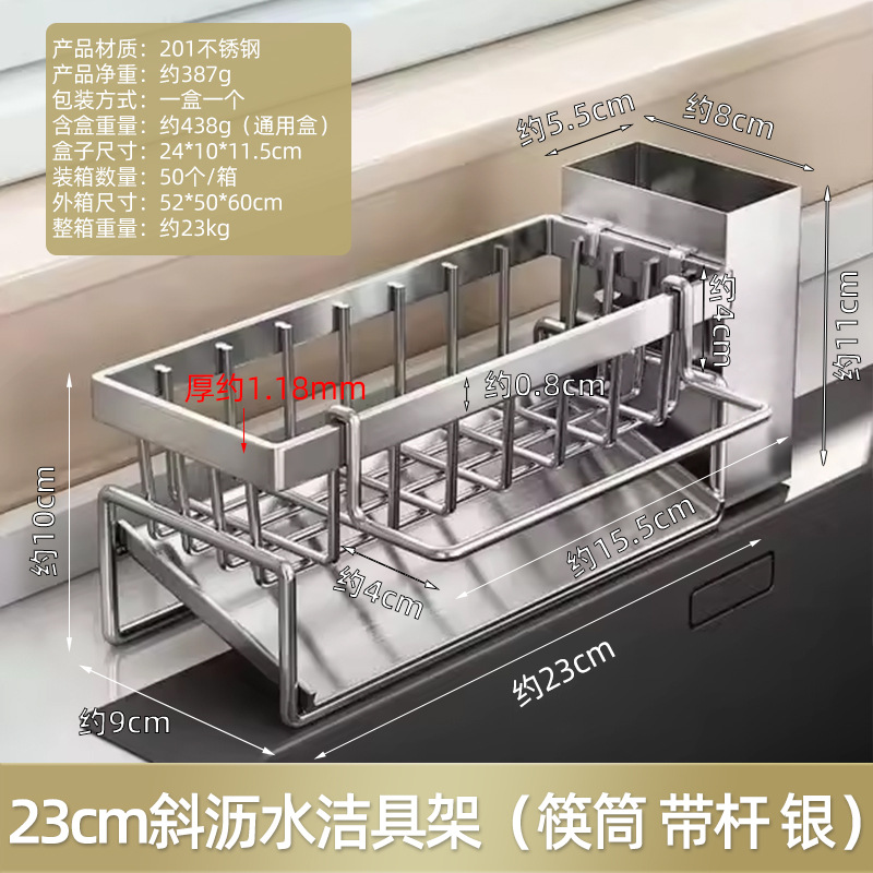• 23cm 경사형 배수위생도기걸이(젓가락통+봉,실버)