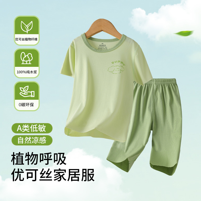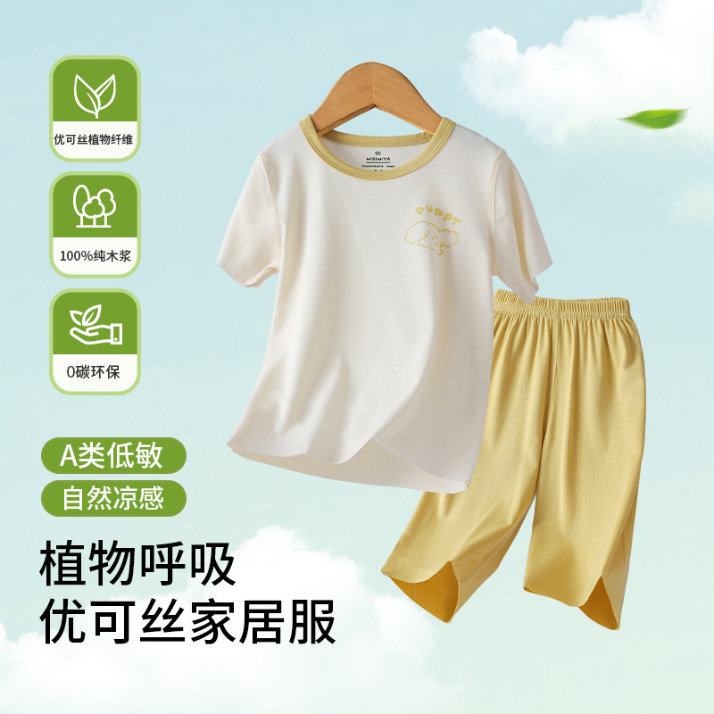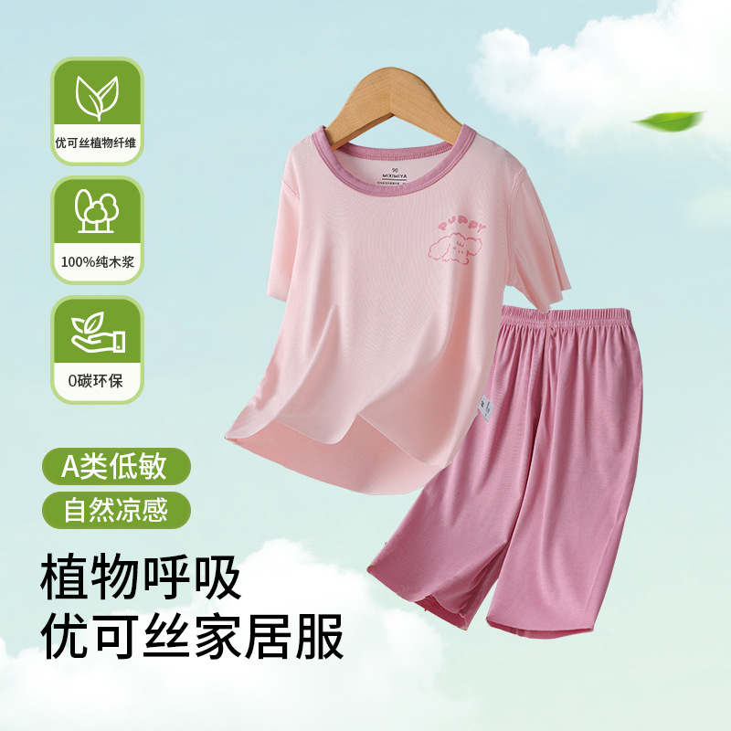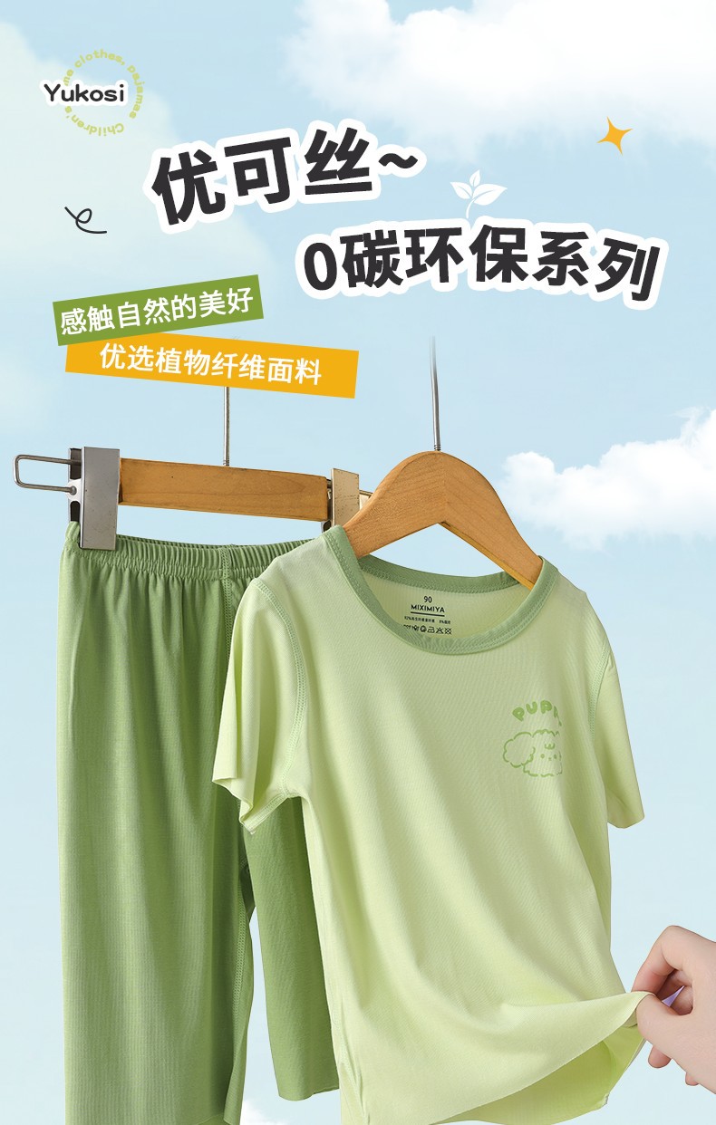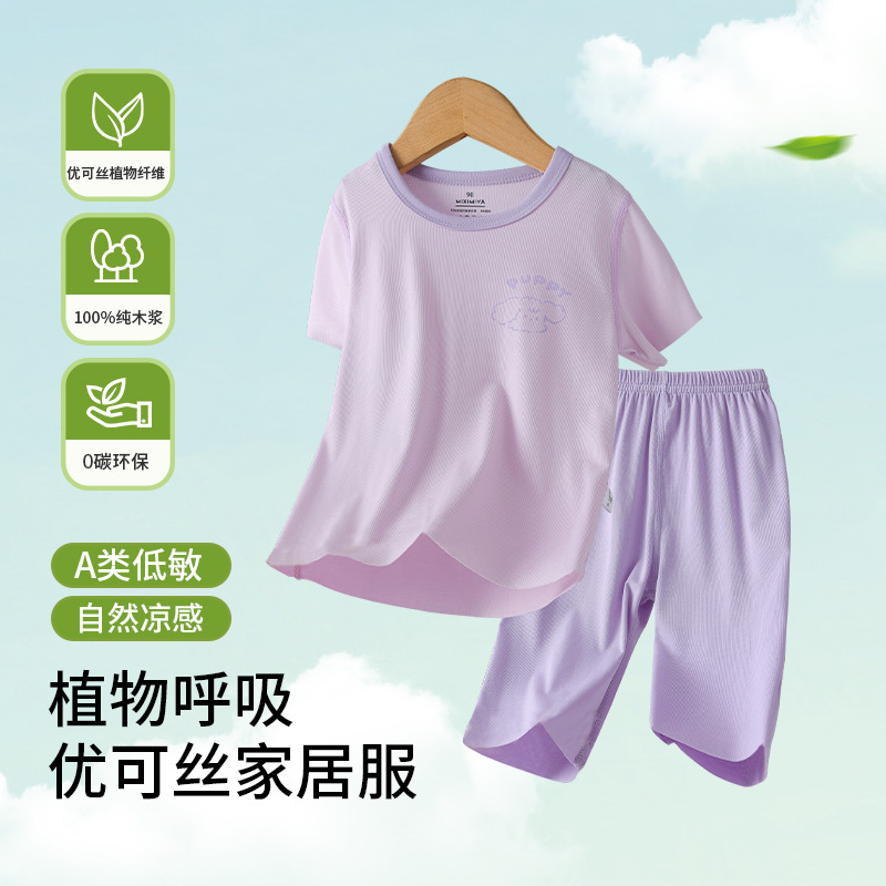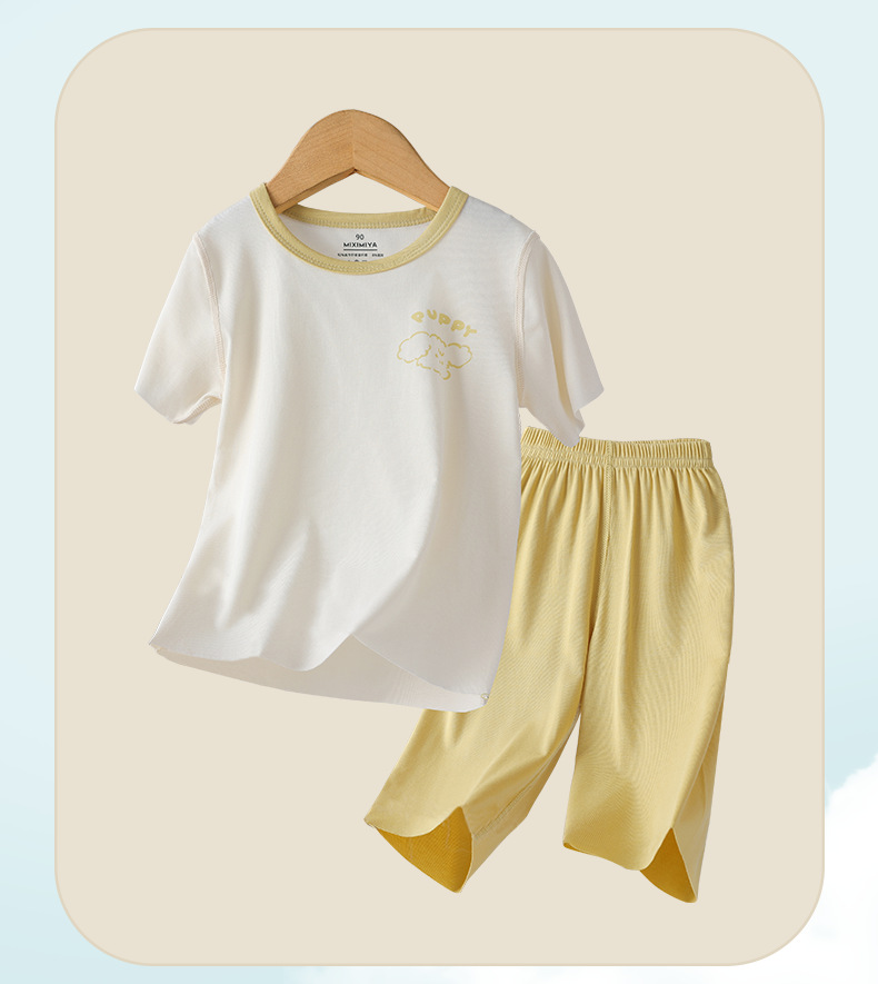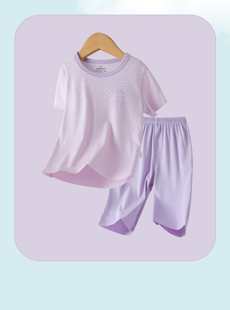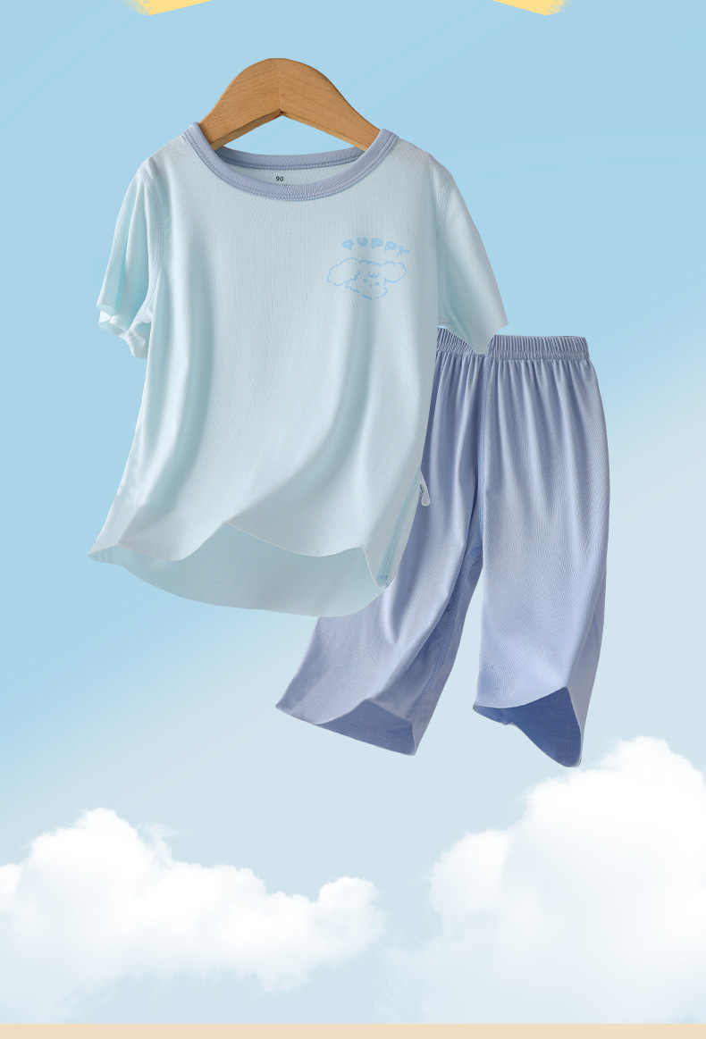 여름 어린이 에어컨 의류 얇은 어린이 잠옷 홈웨어 남녀 공용 긴팔 세트 루즈하고 통기성 좋음