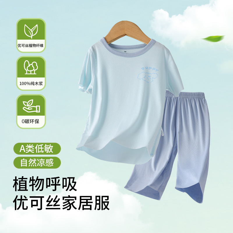 여름 어린이 에어컨 의류 얇은 어린이 잠옷 홈웨어 남녀 공용 긴팔 세트 루즈하고 통기성 좋음스토어 가기