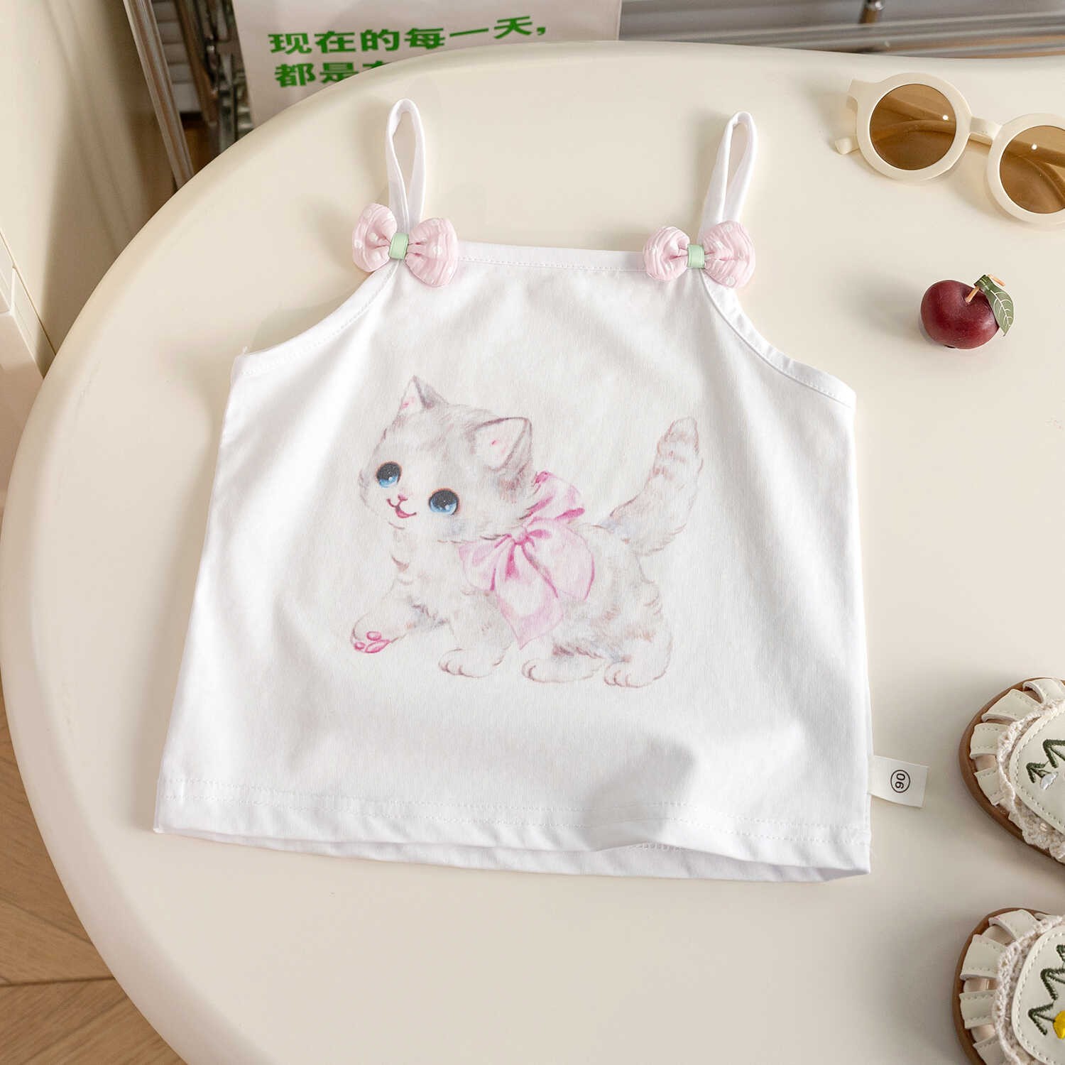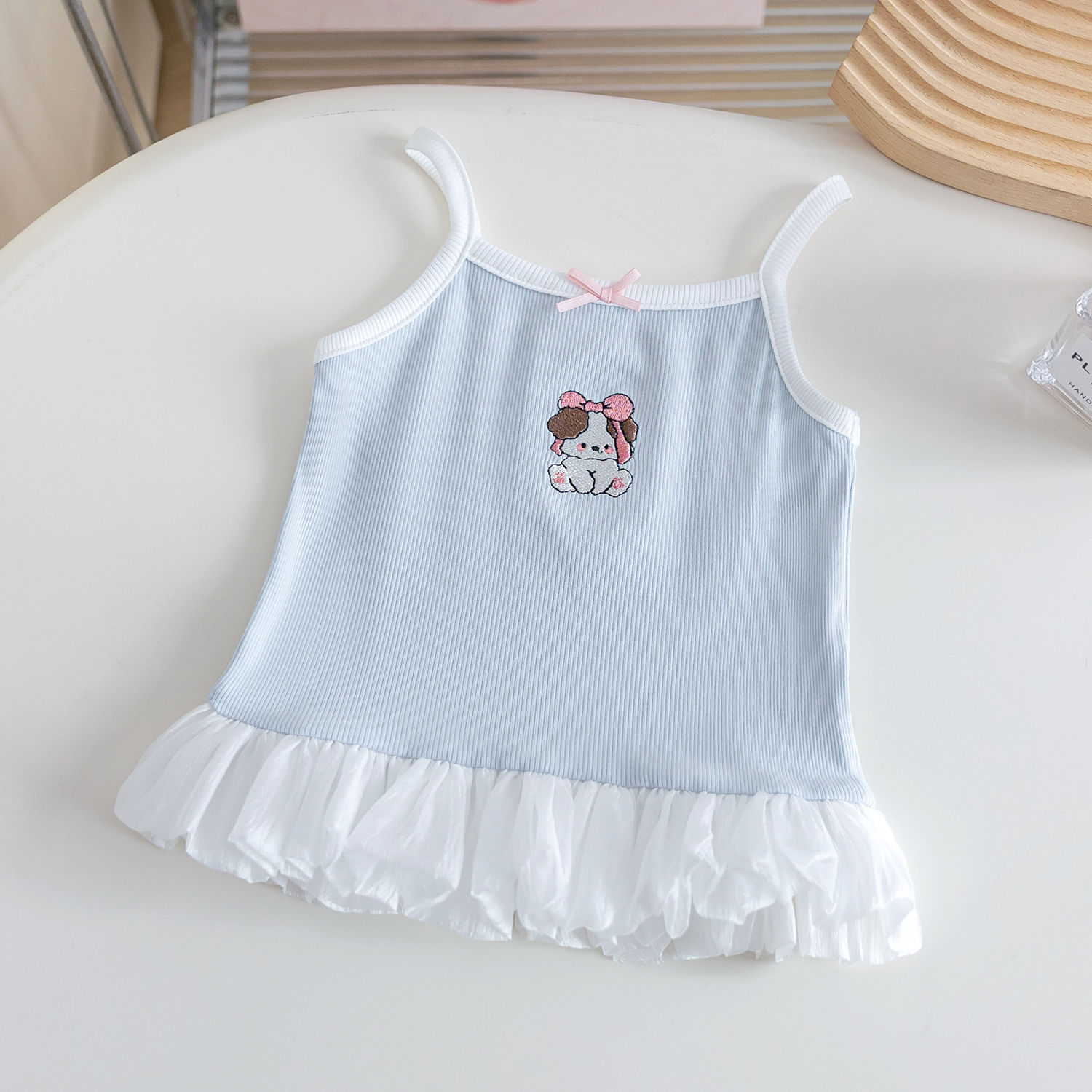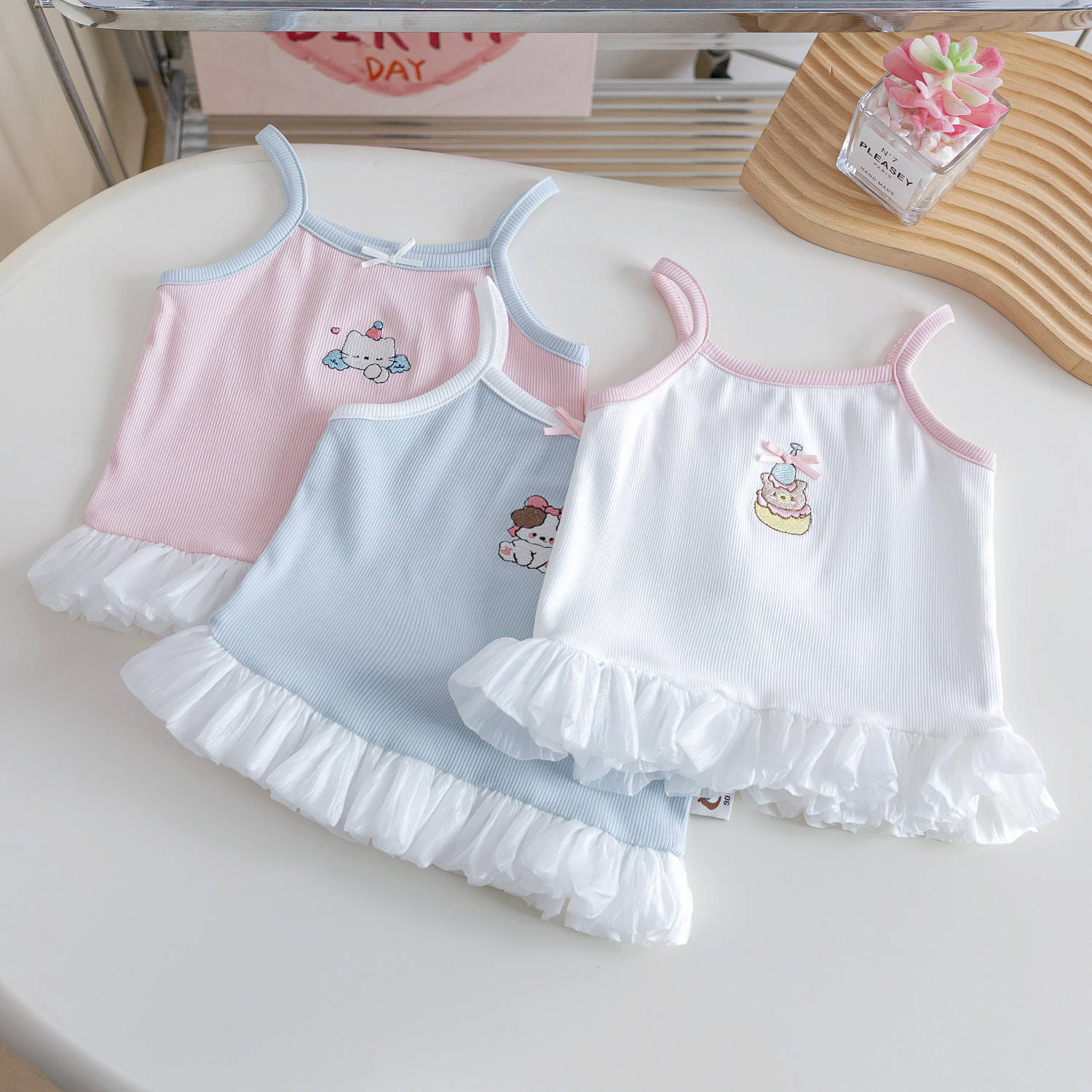 여자 슬링 아기 소녀 여름 공주 바느질 민소매 레이스 조끼 2025 새로운 도착 만화 자수 최고 유행스토어 가기