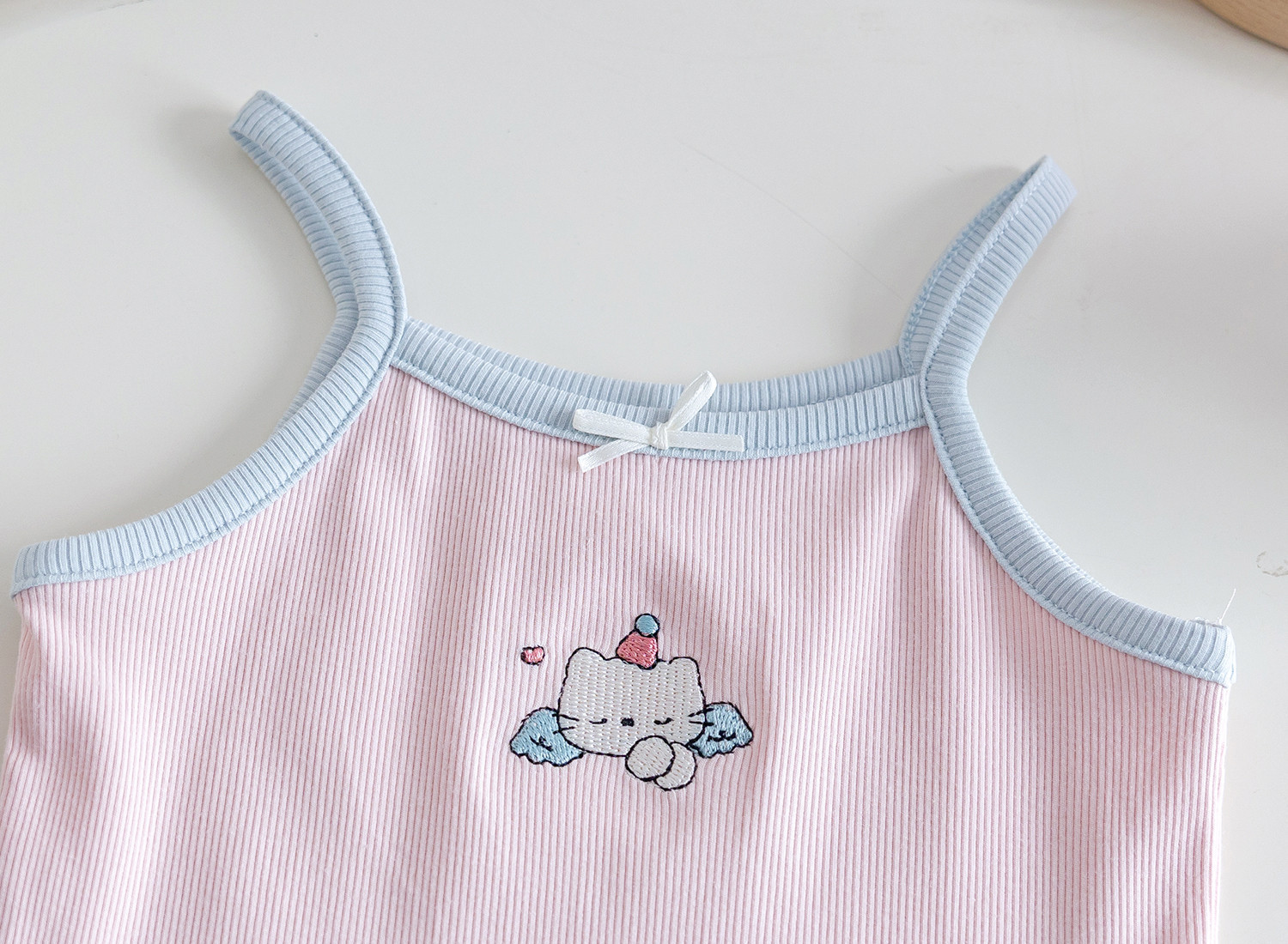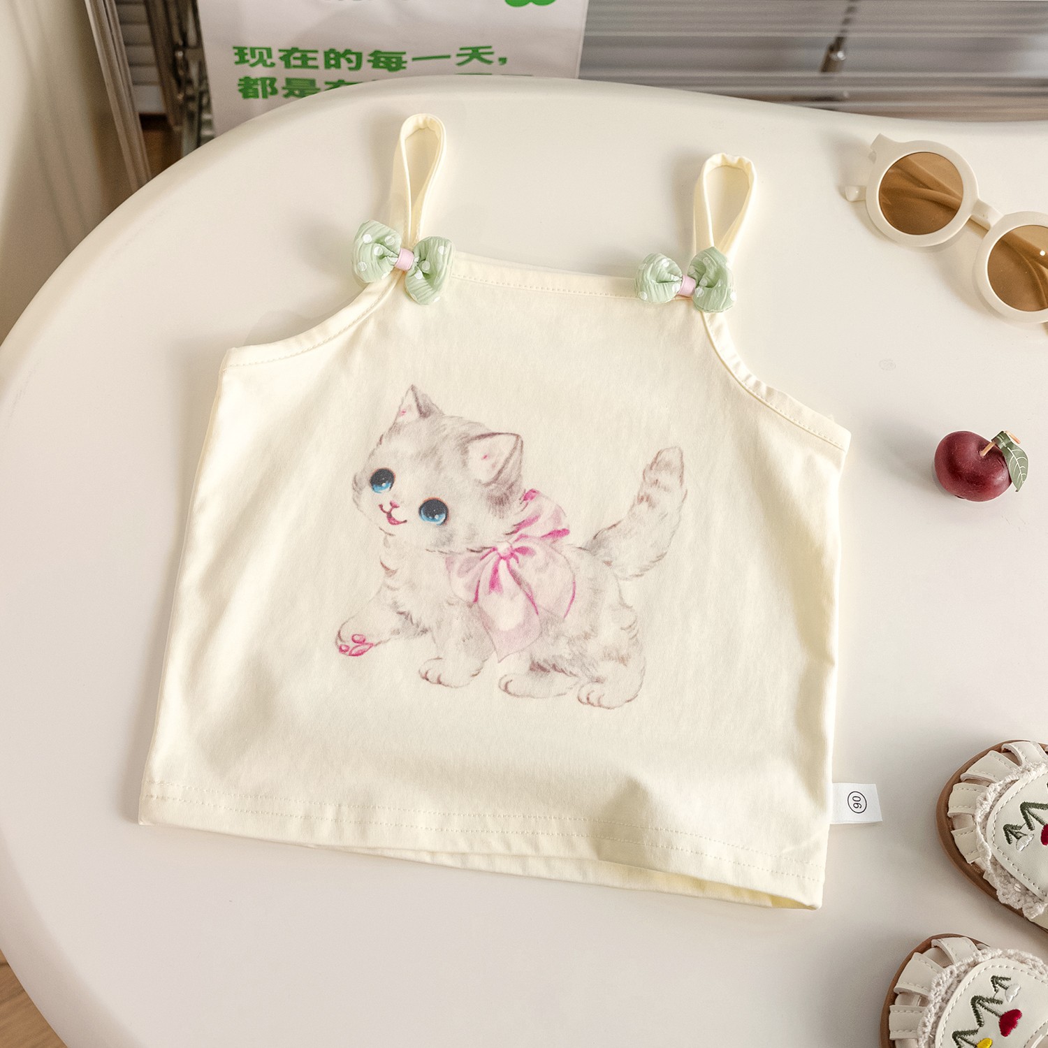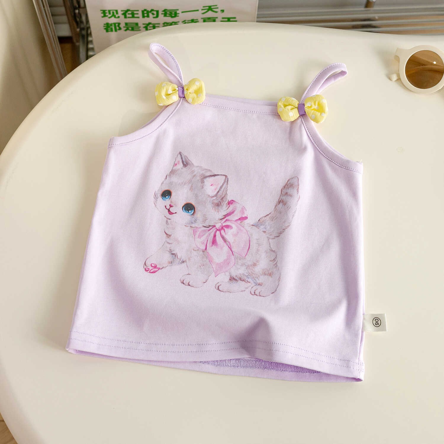 여자 슬링 아기 소녀 여름 공주 바느질 민소매 레이스 조끼 2025 새로운 도착 만화 자수 최고 유행스토어 가기