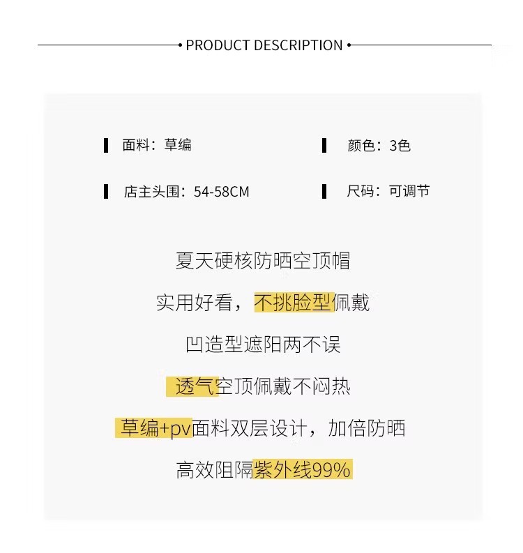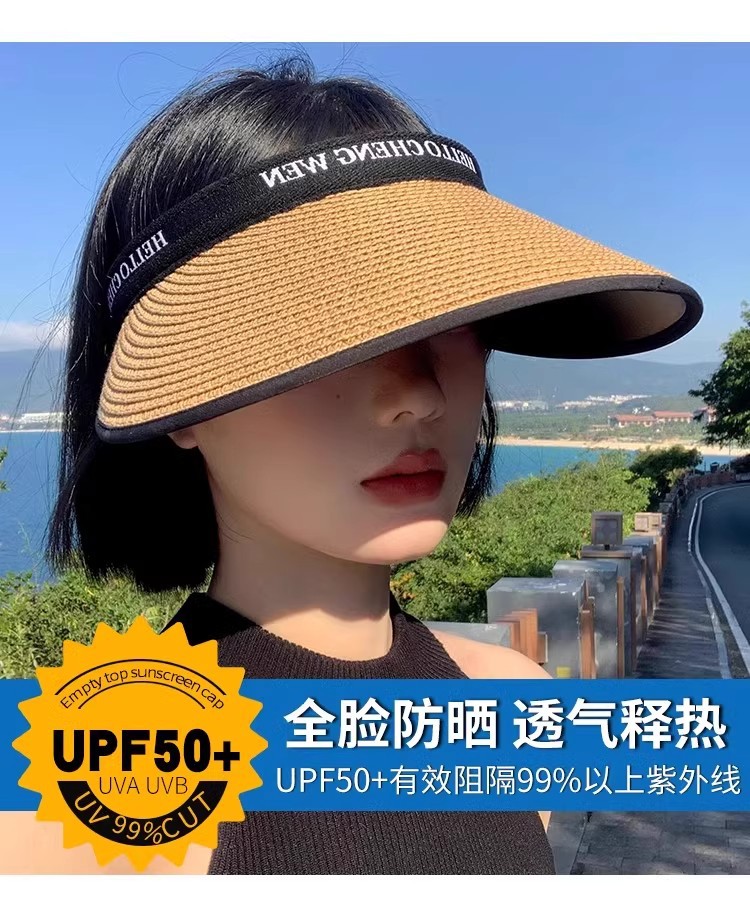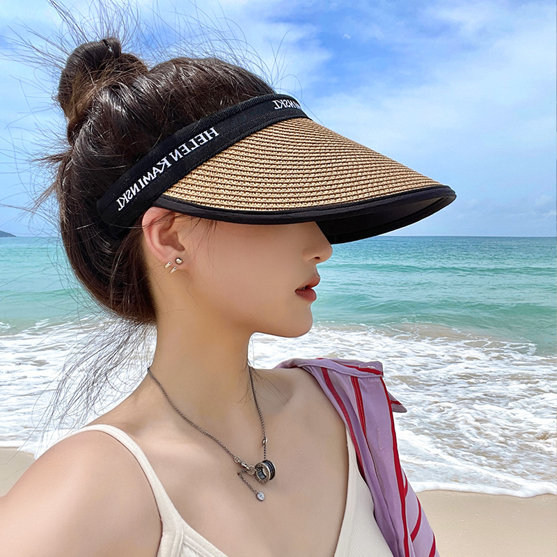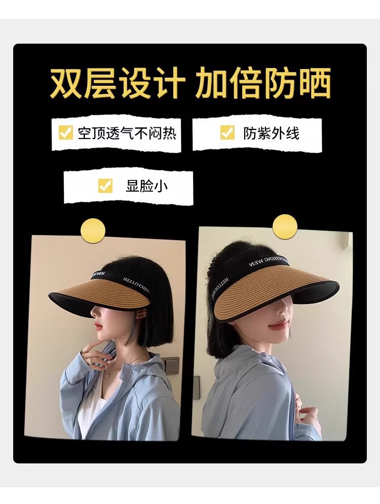 여름 큰 밀짚 짠 자외선 차단제 모자 자외선 보호 야외 차양 모자 얼굴을 덮는 작은 챙이 밀짚 모자 태양 모자스토어 가기