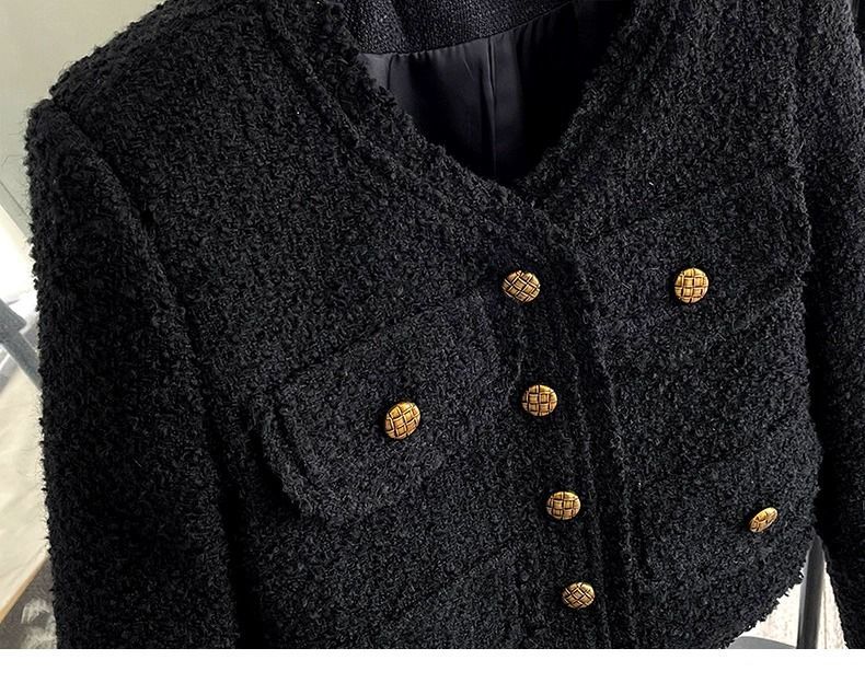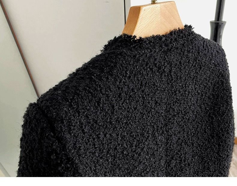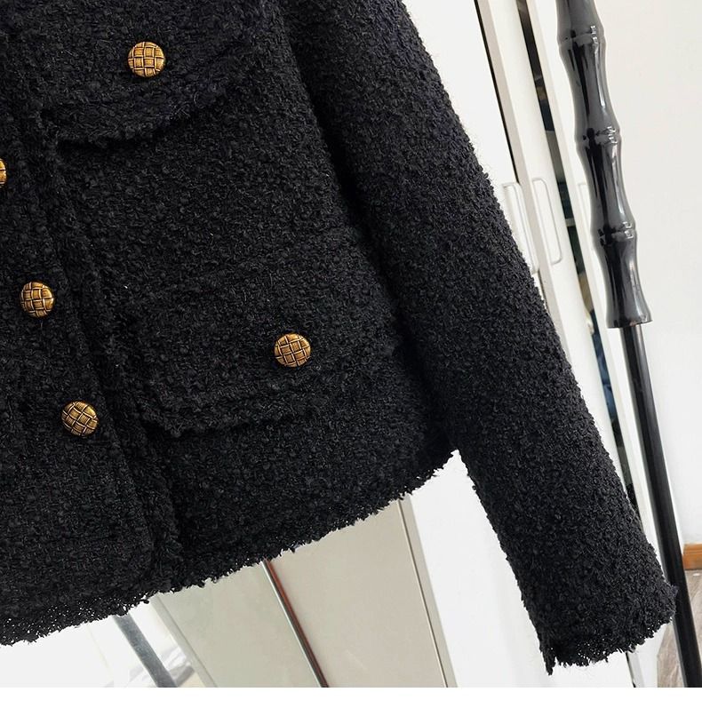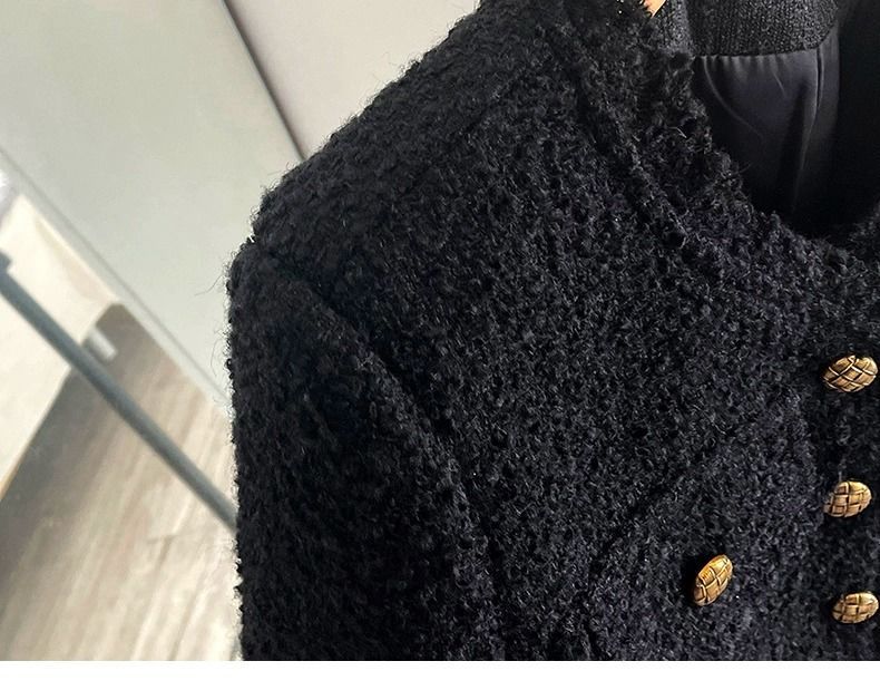 검은 색 작은 향기로운 스타일 재킷 짧은 스타일 2024 새로운 봄, 가을 얇은 스타일 우아한 레이디 트위드 긴팔 탑 여성스토어 가기