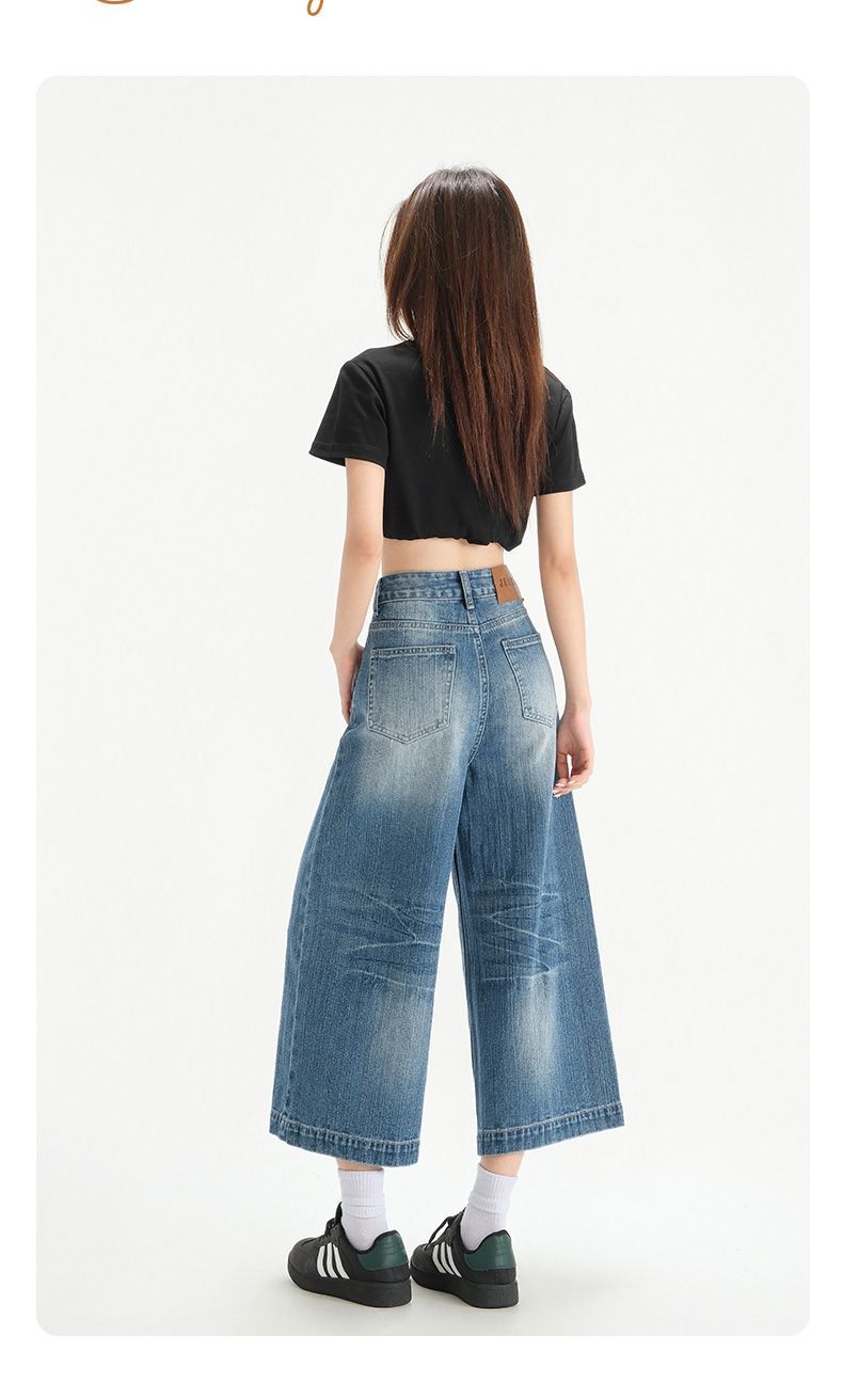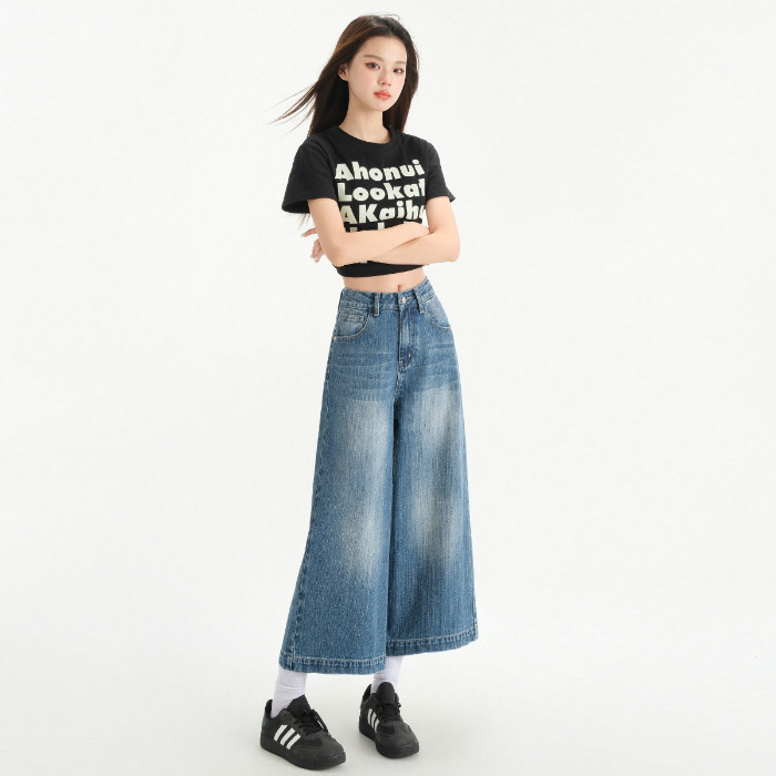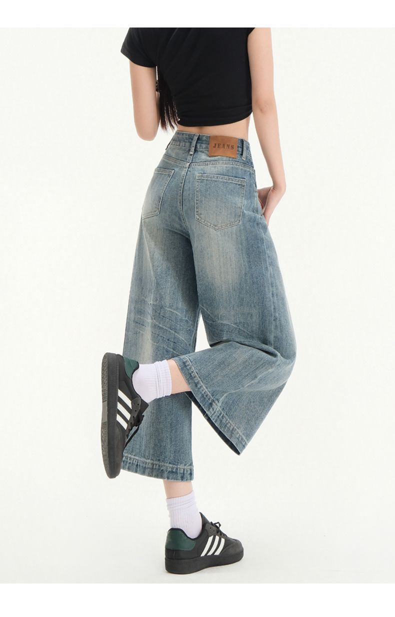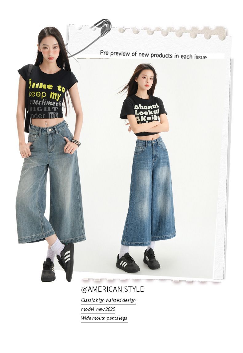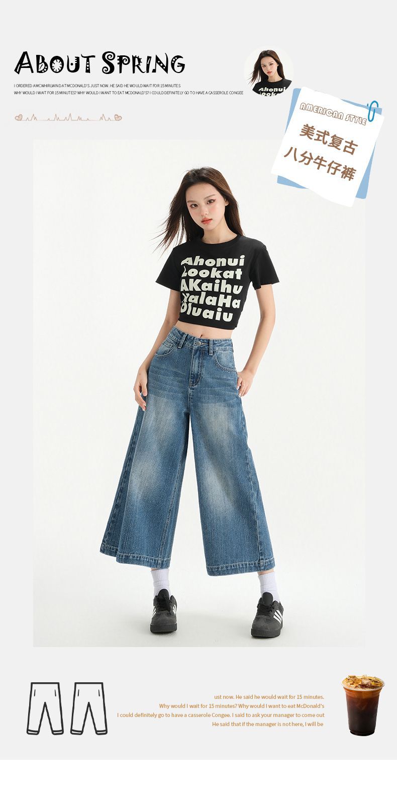 8 점 슬럽 와이드 레그 청바지 여성 봄과 여름 2025 새로운 미국 스타일 레트로 느슨한 슬리밍 스트레이트 크롭 팬츠스토어 가기