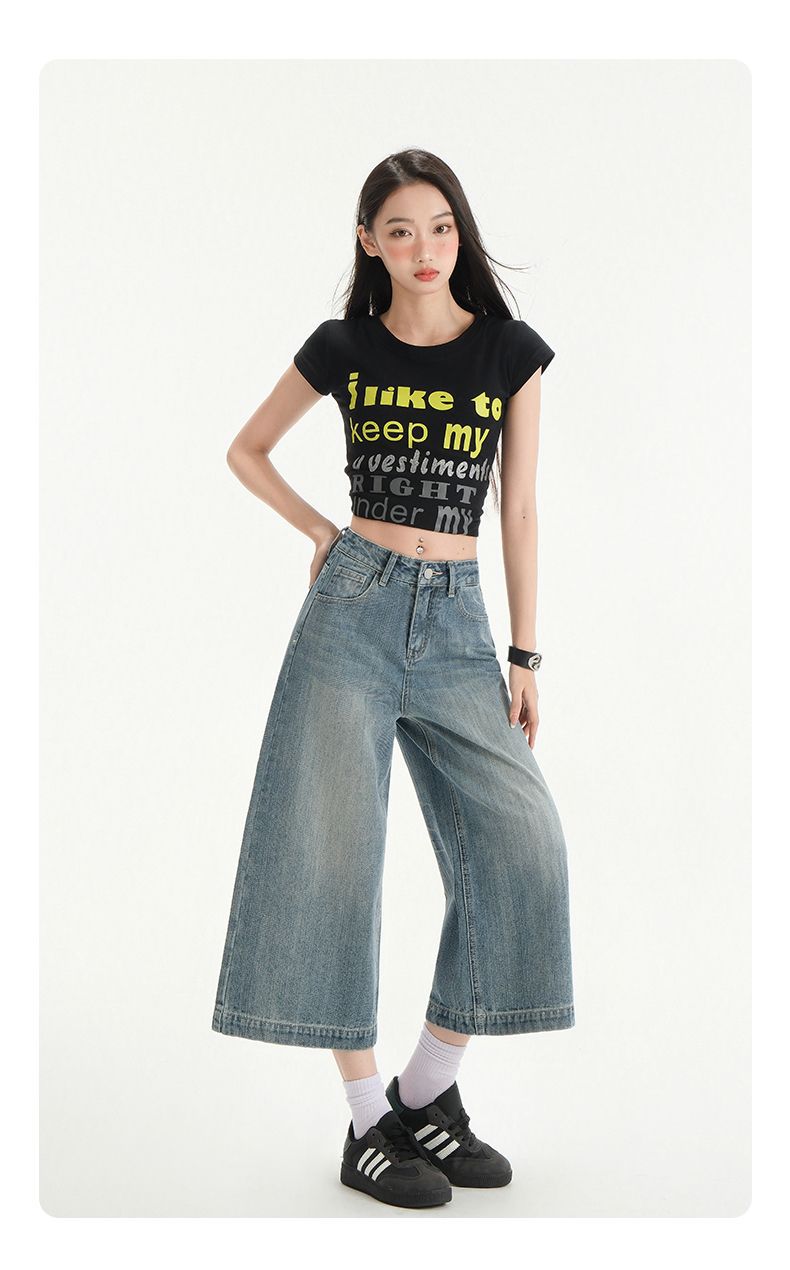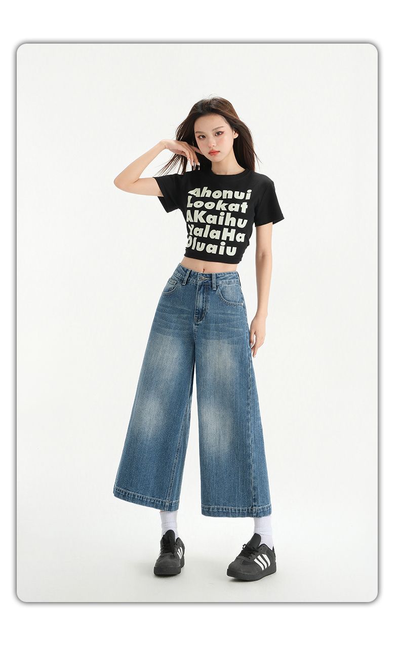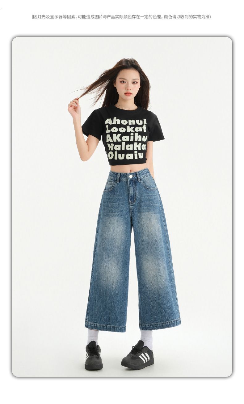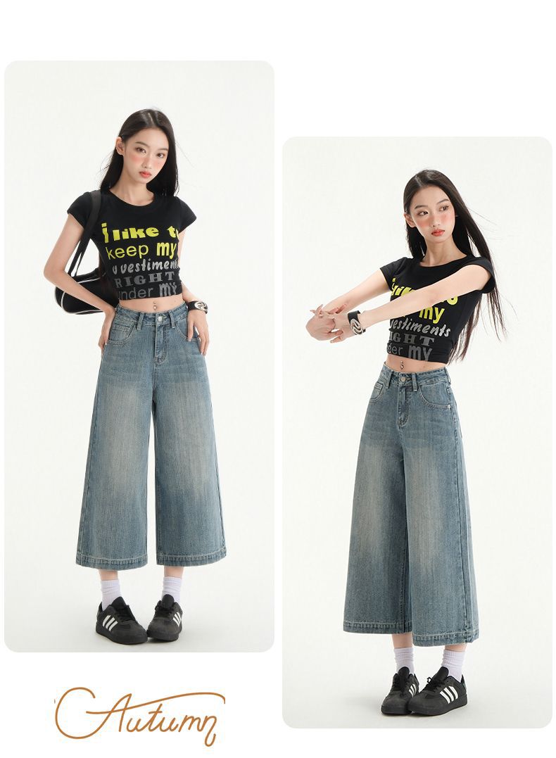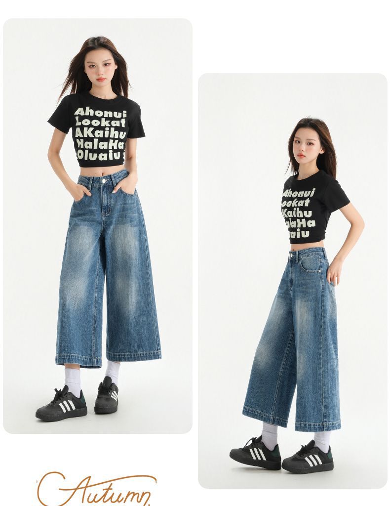 8 점 슬럽 와이드 레그 청바지 여성 봄과 여름 2025 새로운 미국 스타일 레트로 느슨한 슬리밍 스트레이트 크롭 팬츠스토어 가기