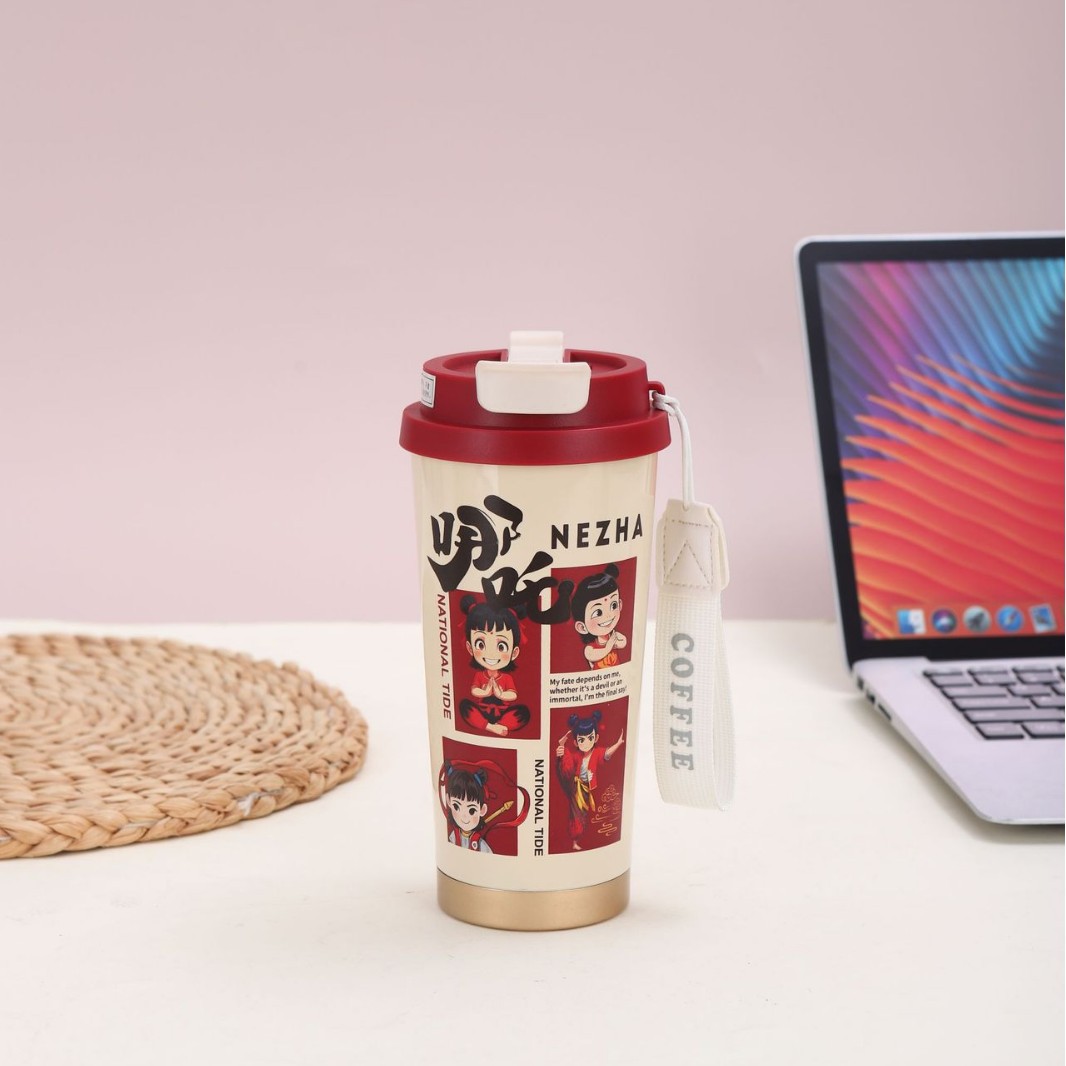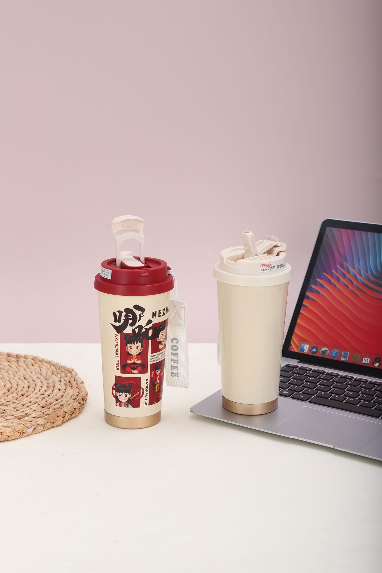 네자 2 마법의 소년 바다 316 스테인레스 스틸 보온병 컵 빨대 남성과 여성의 더블 사용 대용량 커피 물 컵 끓기 c스토어 가기