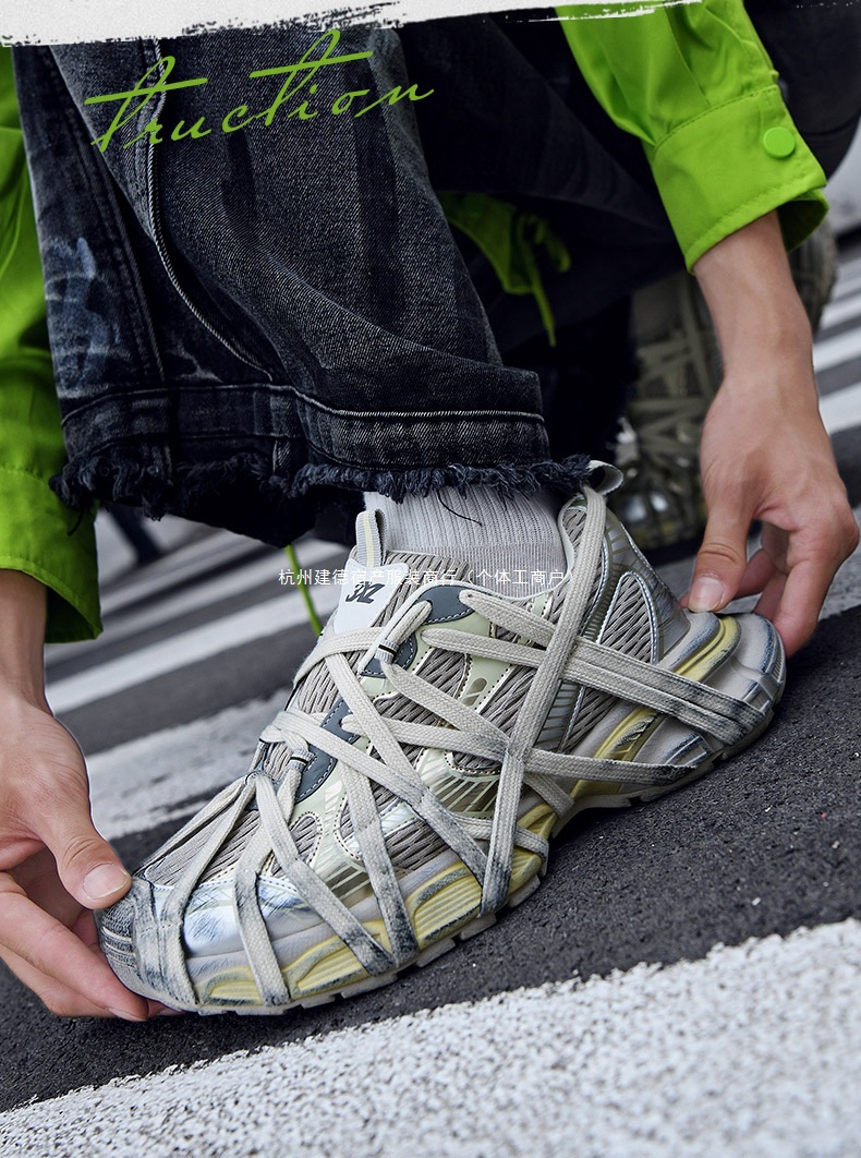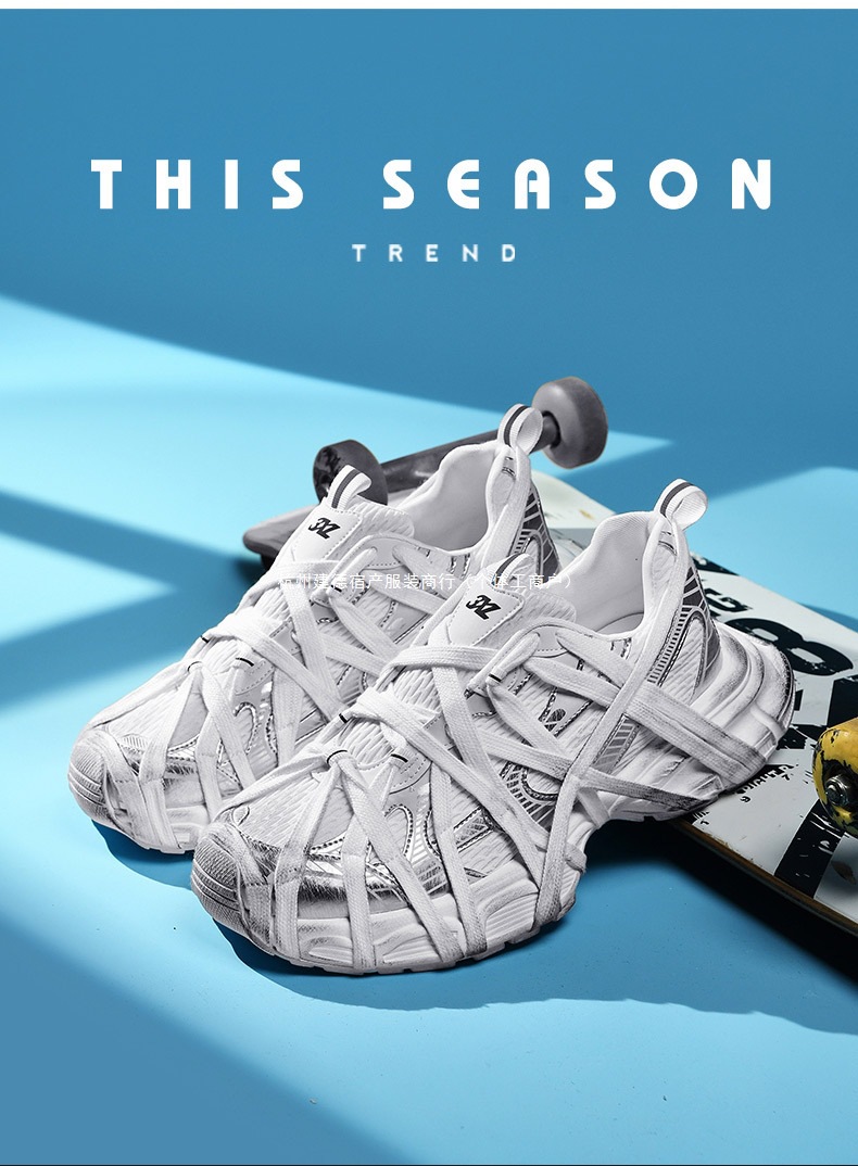 두꺼운 밑창 최신 유행 신발 남성 파리 3XL 캐주얼 운동화 여성용 튀긴 거리 고민 거미줄 아빠 신발 끈스토어 가기