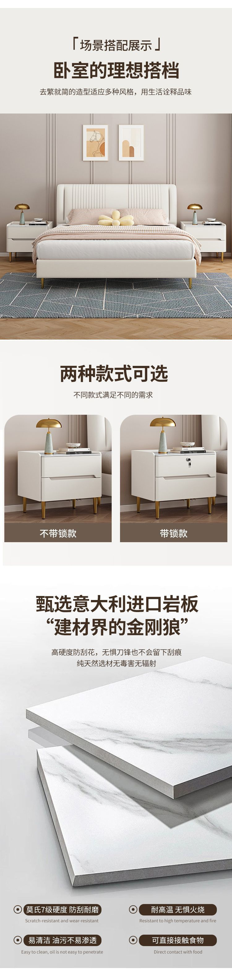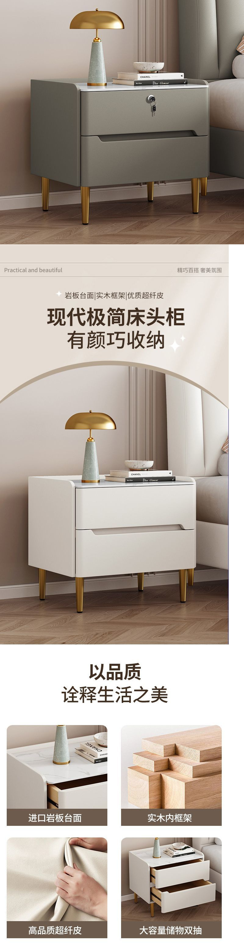 단단한 나무 침대 옆 테이블 작은 간단한 현대 가정 침실 빛 고급 고급 고급 가죽 새로운 바위 보드 보관 침대 옆 캐비닛