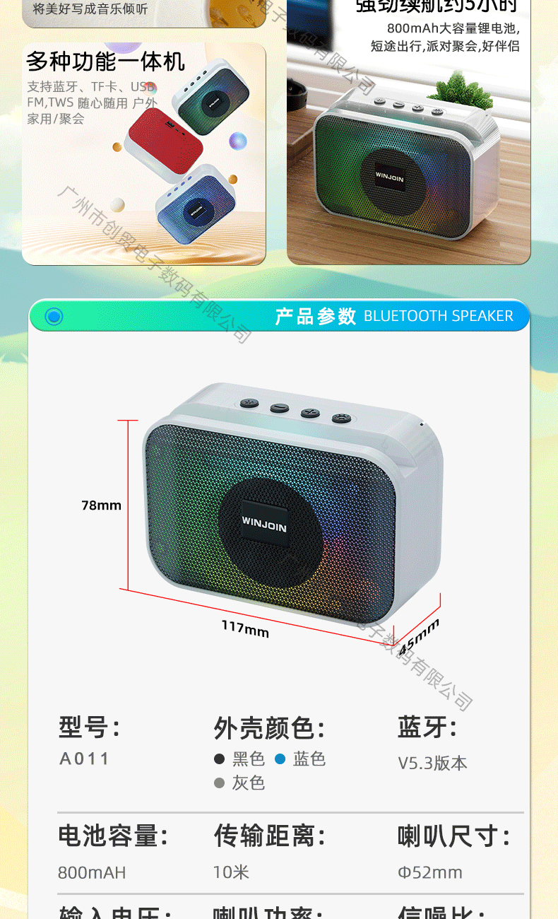 새로운 가정용 미니 컬러풀 블루투스 소형 스피커 야외 휴대용 무선 서브우퍼 소형 고출력 스피커