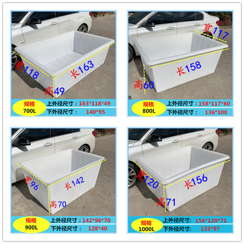 두꺼운 쇠고기 힘줄 플라스틱 물 탱크 직사각형 양식 어류 판매 어류 플라스틱 분지 대형 물 탱크 스퀘어 배럴 물 저장 양동이