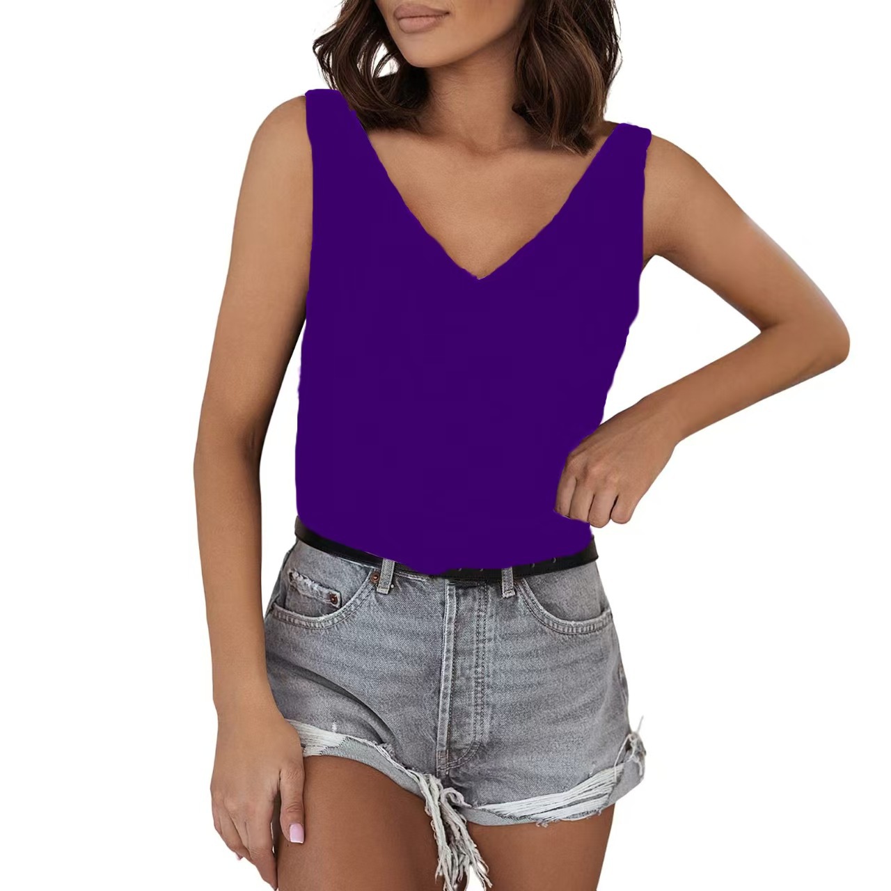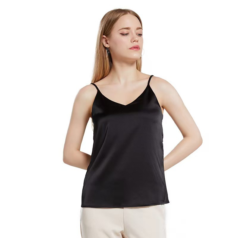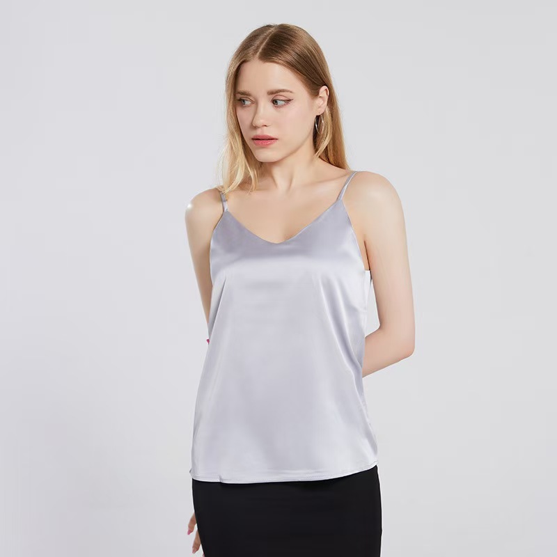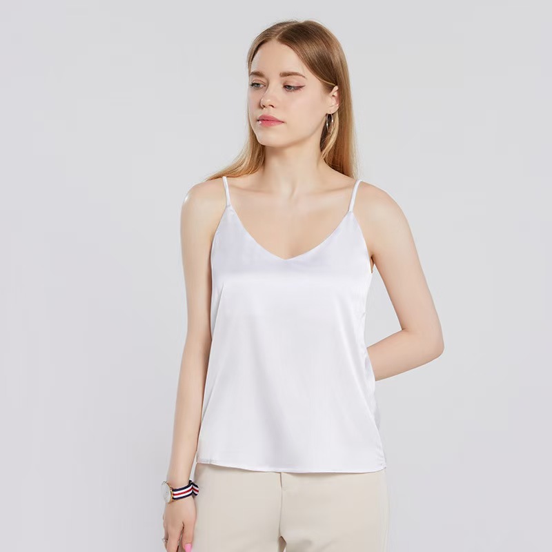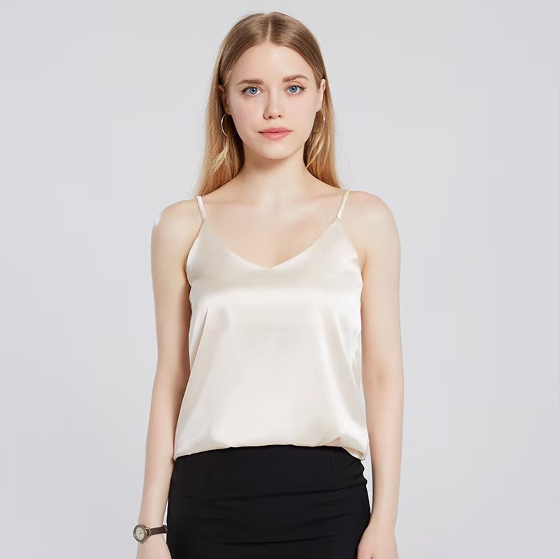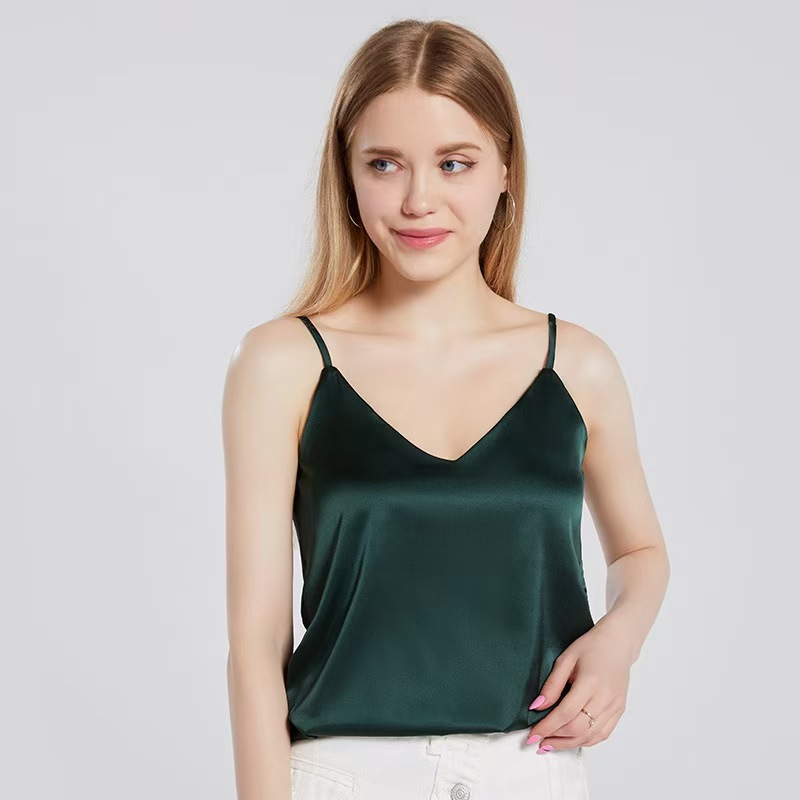 아마존 국경 간 조끼 여성 실키 실크 슬링 내베이스 셔츠 짧은 외부 착용 V-Neck 슬림핏