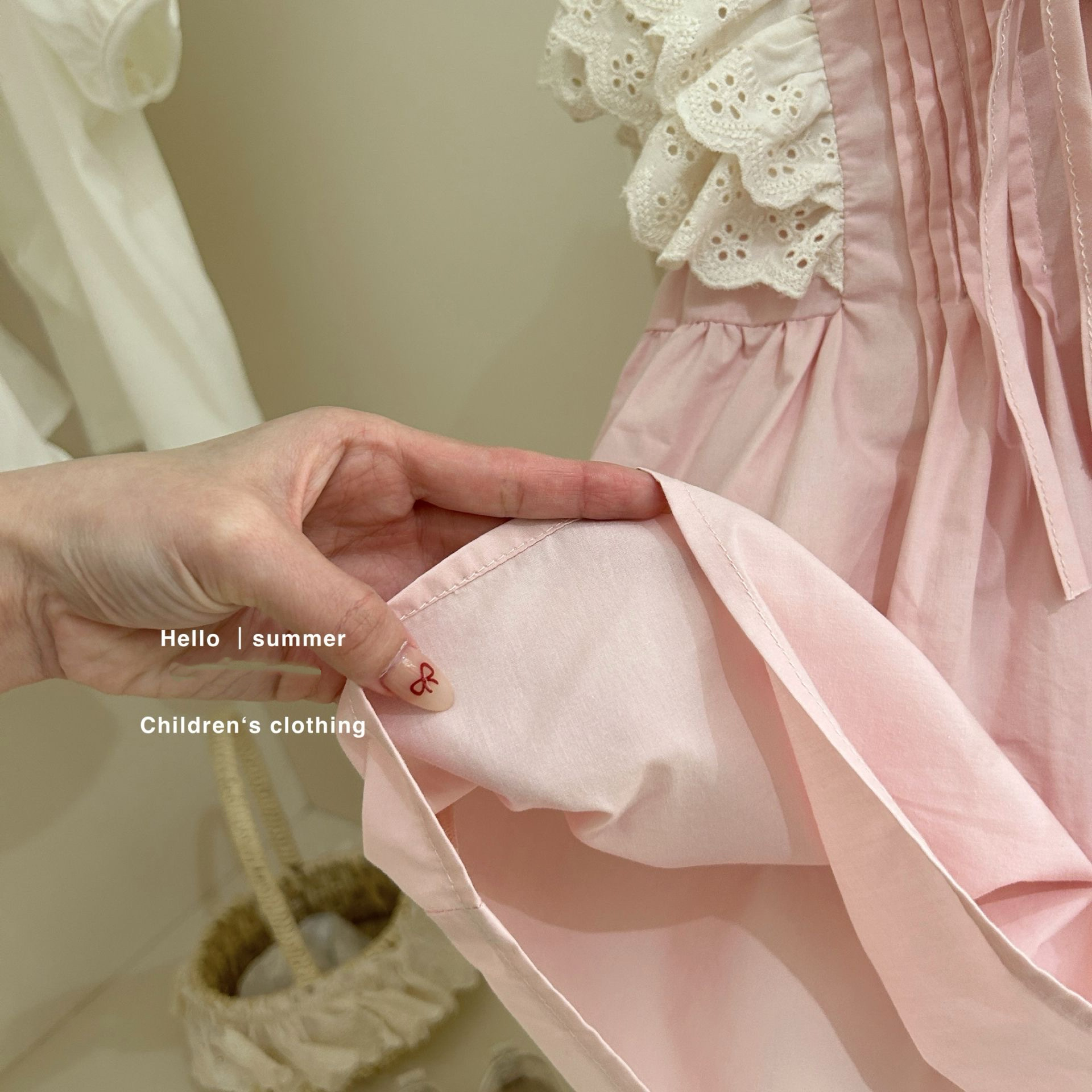 2025 여름 소녀 원피스 달콤한 레이스 비행 소매 공주 원피스 어린이 치마 소녀 핑크 인형 원피스 트렌디