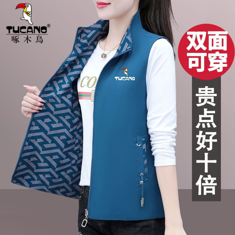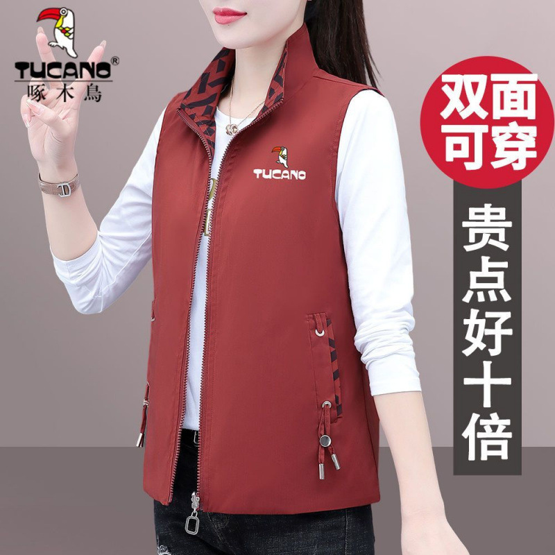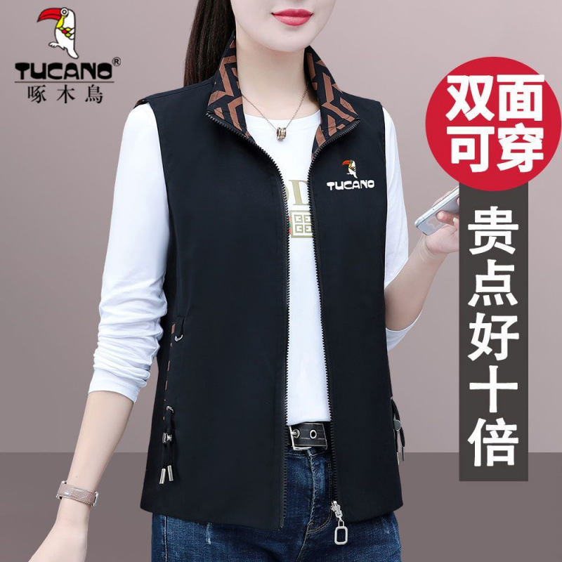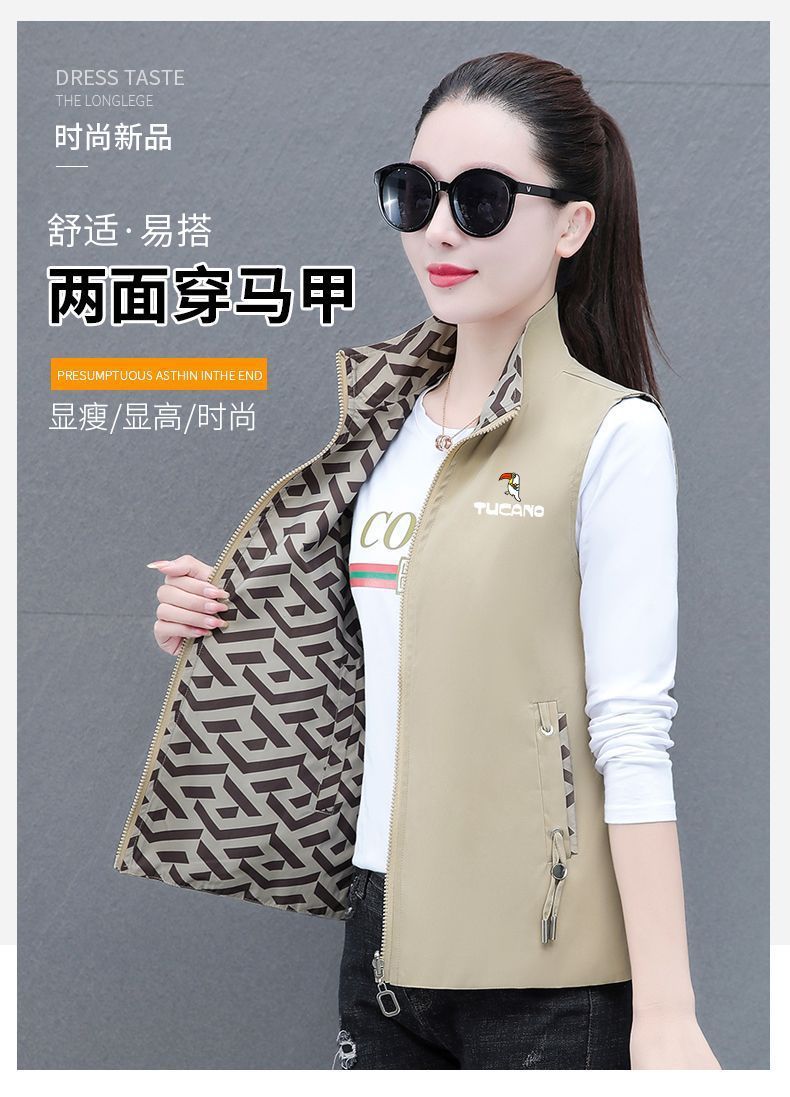 딱따구리 양면 입고 조끼 여자 가을 2025 년 신형 중년 어머니 봄 · 가을 올매치 외모 입고 조끼 자켓스토어 가기
