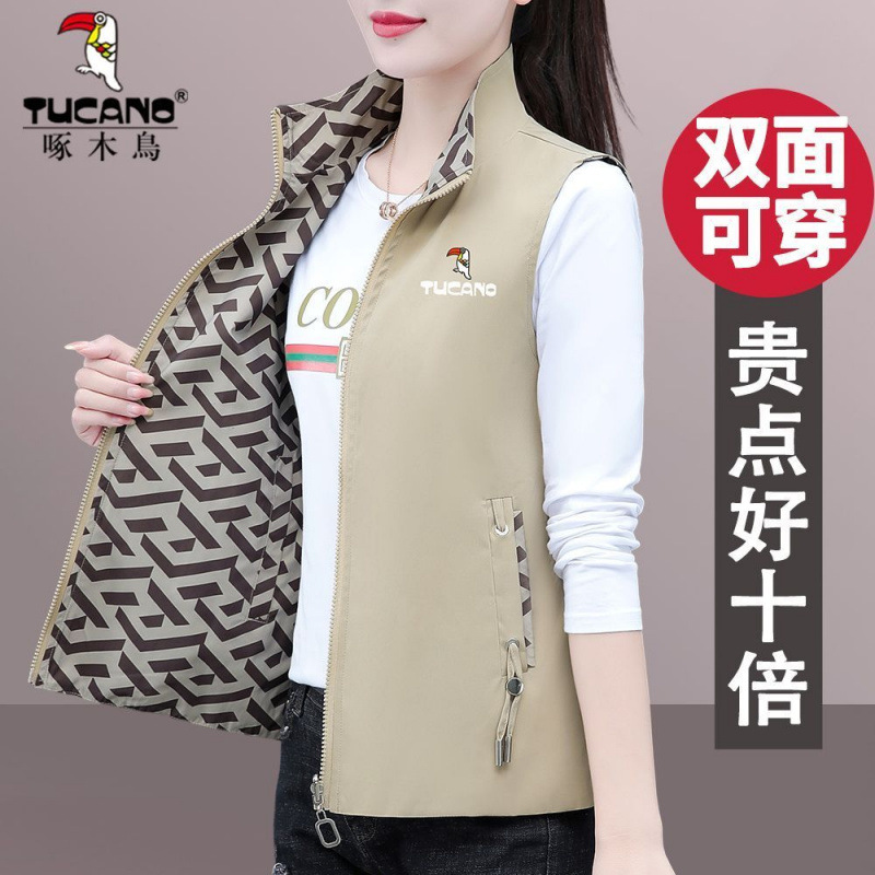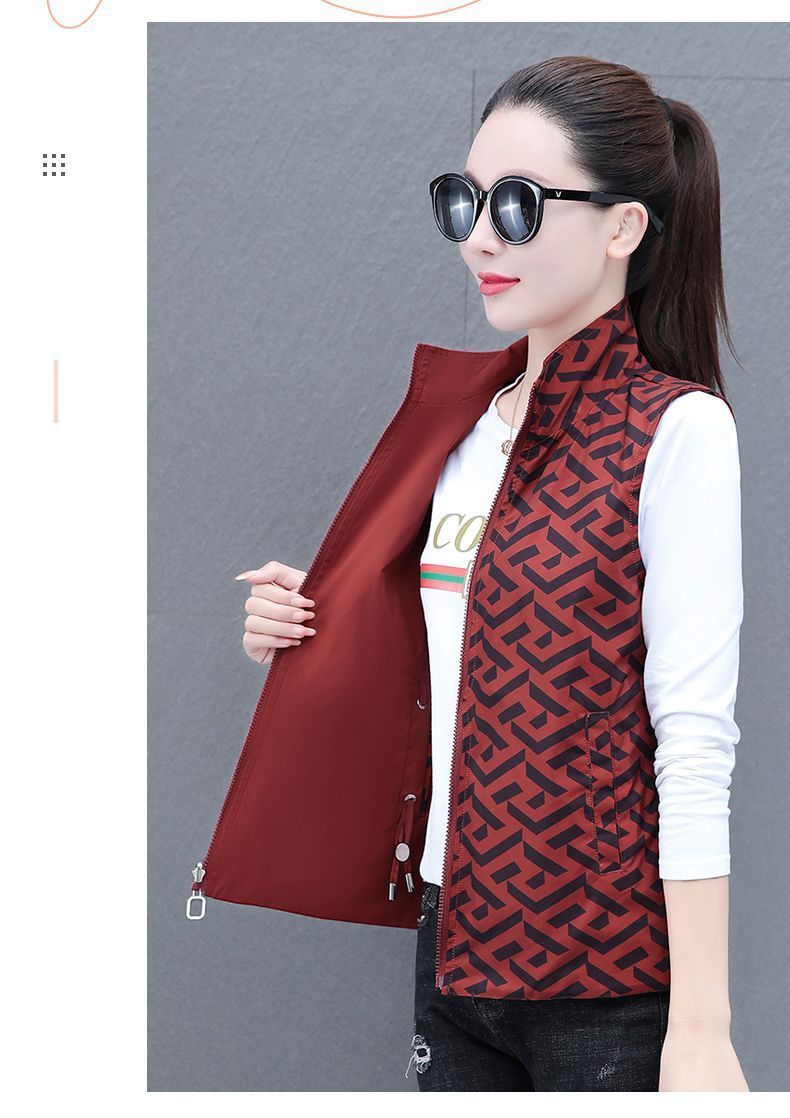 딱따구리 양면 입고 조끼 여자 가을 2025 년 신형 중년 어머니 봄 · 가을 올매치 외모 입고 조끼 자켓