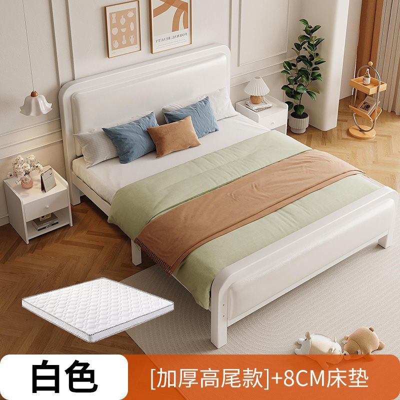 • 하이테일이 있는 두꺼운 흰색 침대 + 20cm 스프링 매트리스 [위층 배송]