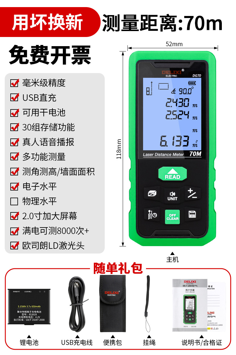 • [새 제품으로 교체] 70m 음성 버전(USB 직접 충전/전자 레벨)
