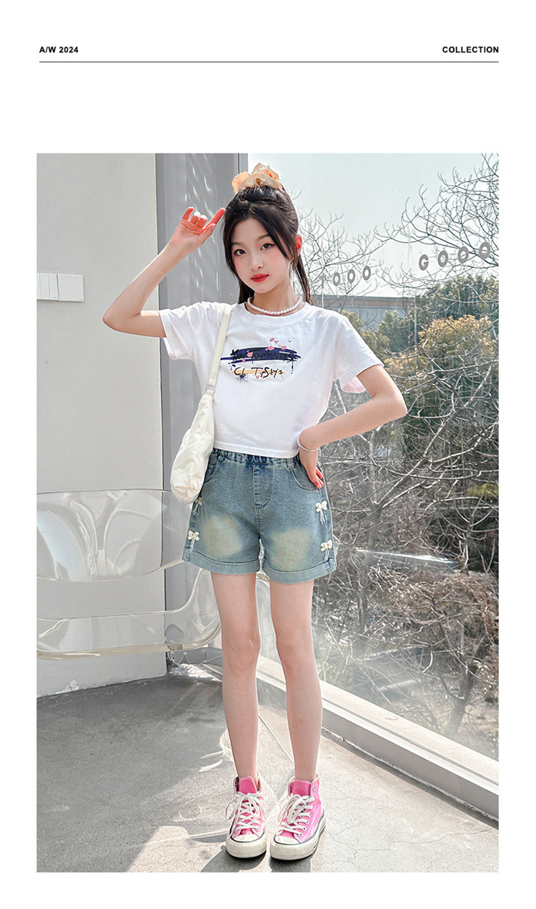 소녀 데님 반바지 여름 얇은 새 어린이 바지 큰 아이 소녀 여름 서양식 외모 반바지스토어 가기