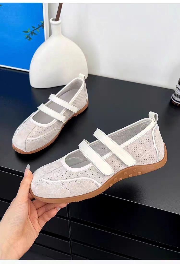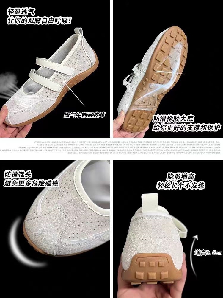재고 빈티지 레드 메리 제인 신발 여성용 내부 높이 증가 벨크로 캐주얼 발레 신발 정품 가죽 소프트 단독 싱글 레이어 신발