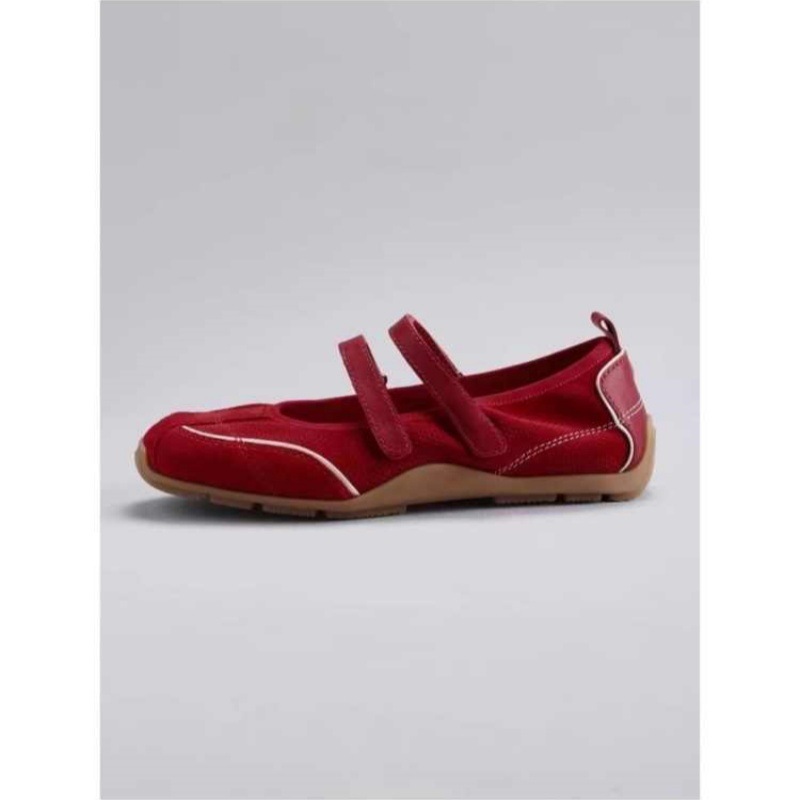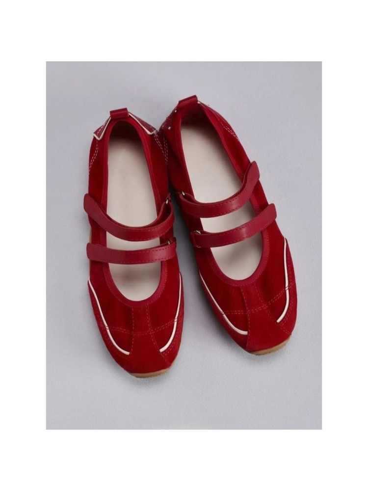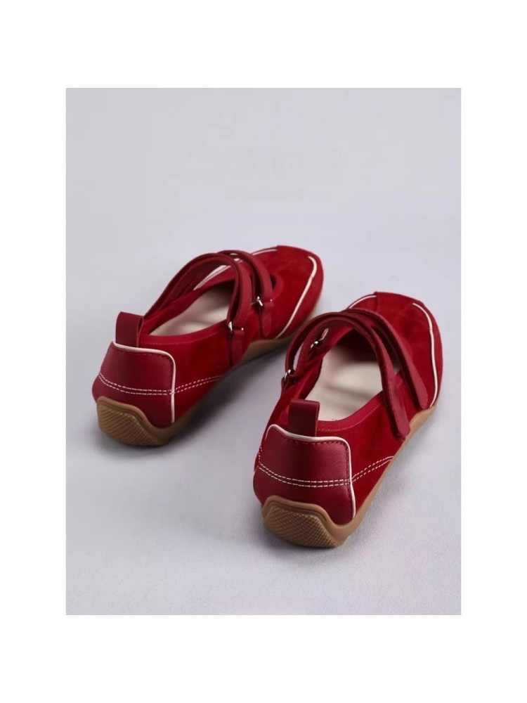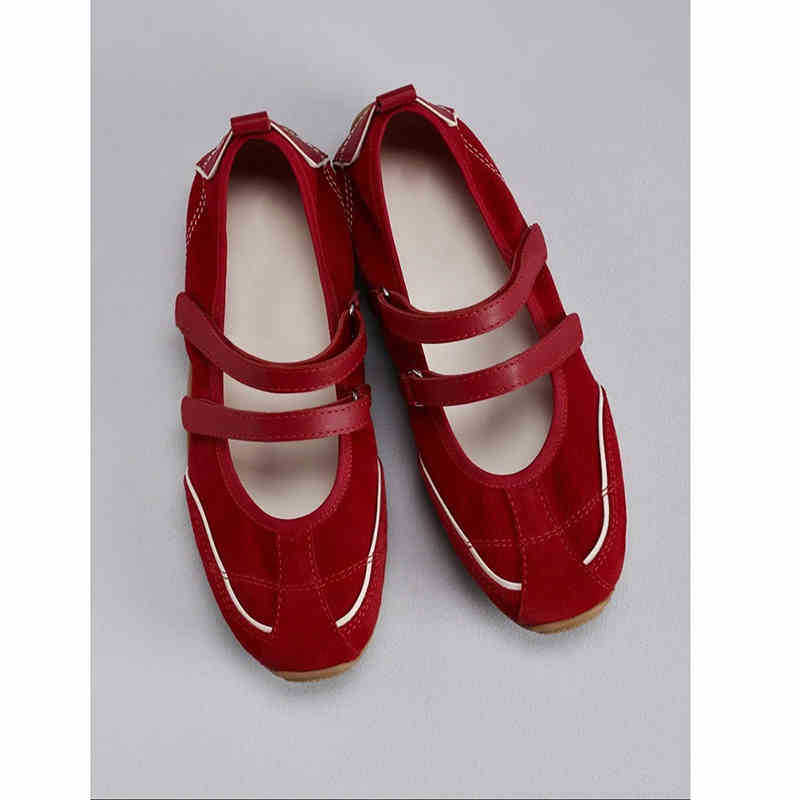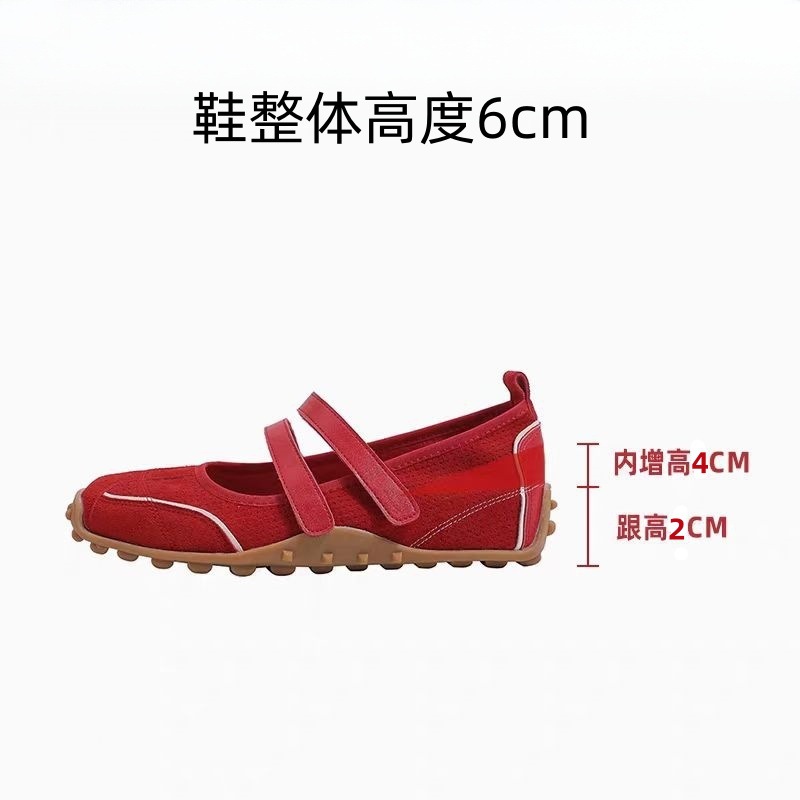 재고 빈티지 레드 메리 제인 신발 여성용 내부 높이 증가 벨크로 캐주얼 발레 신발 정품 가죽 소프트 단독 싱글 레이어 신발스토어 가기