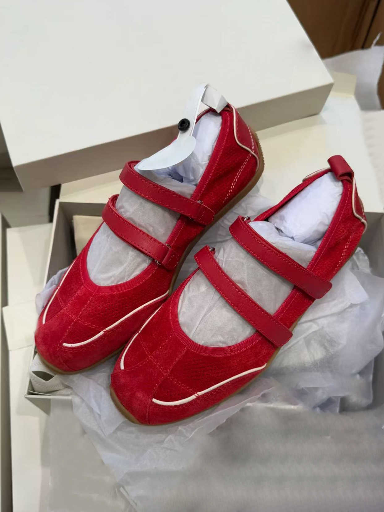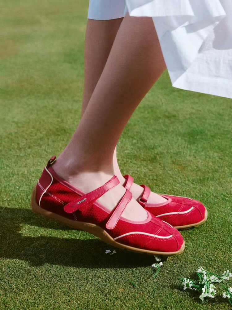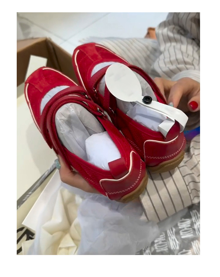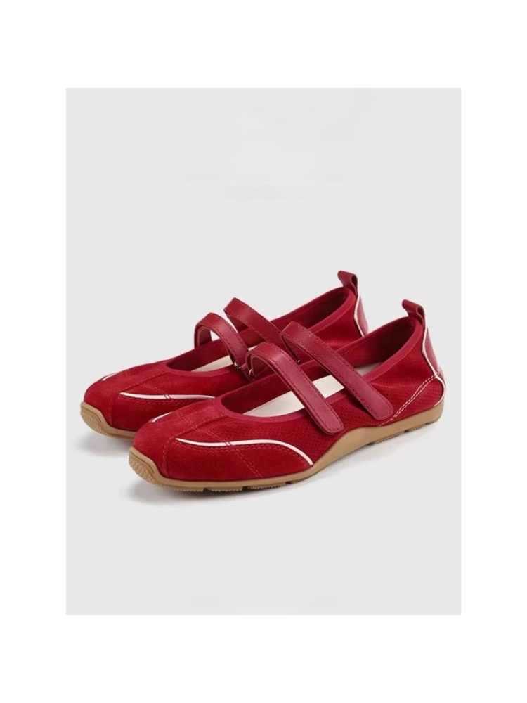 재고 빈티지 레드 메리 제인 신발 여성용 내부 높이 증가 벨크로 캐주얼 발레 신발 정품 가죽 소프트 단독 싱글 레이어 신발스토어 가기