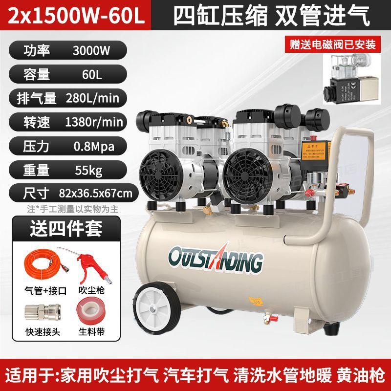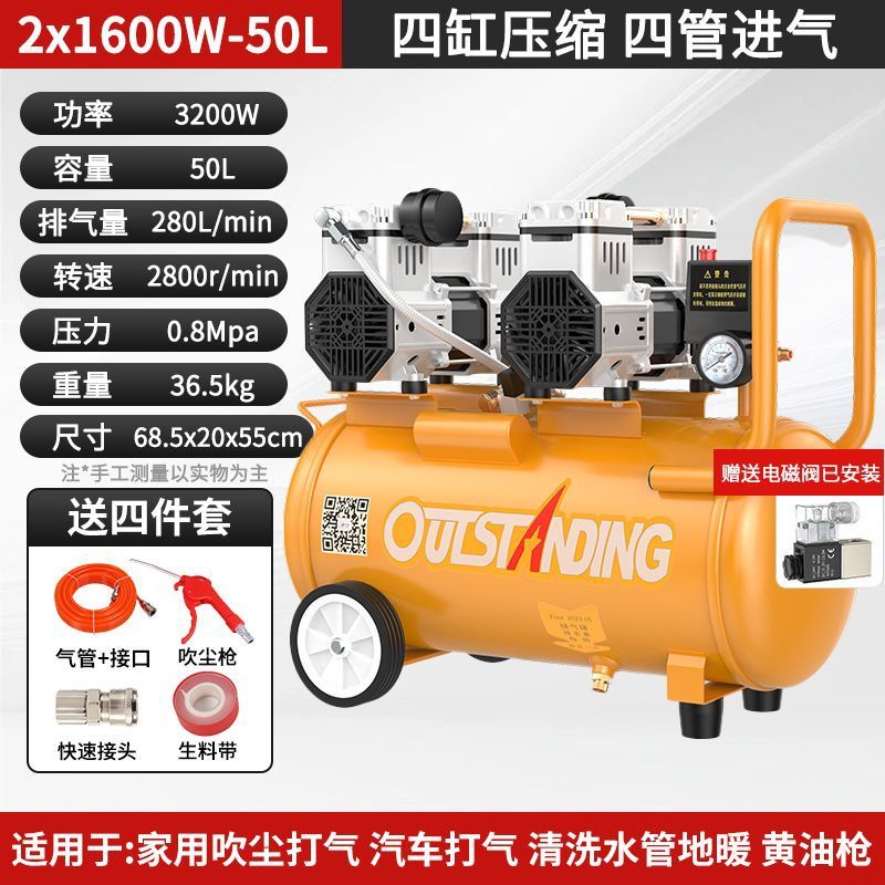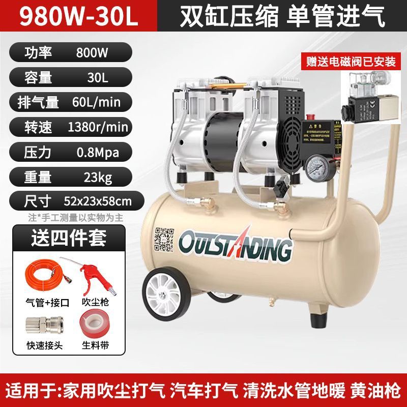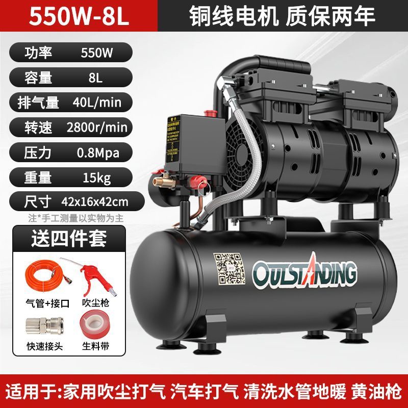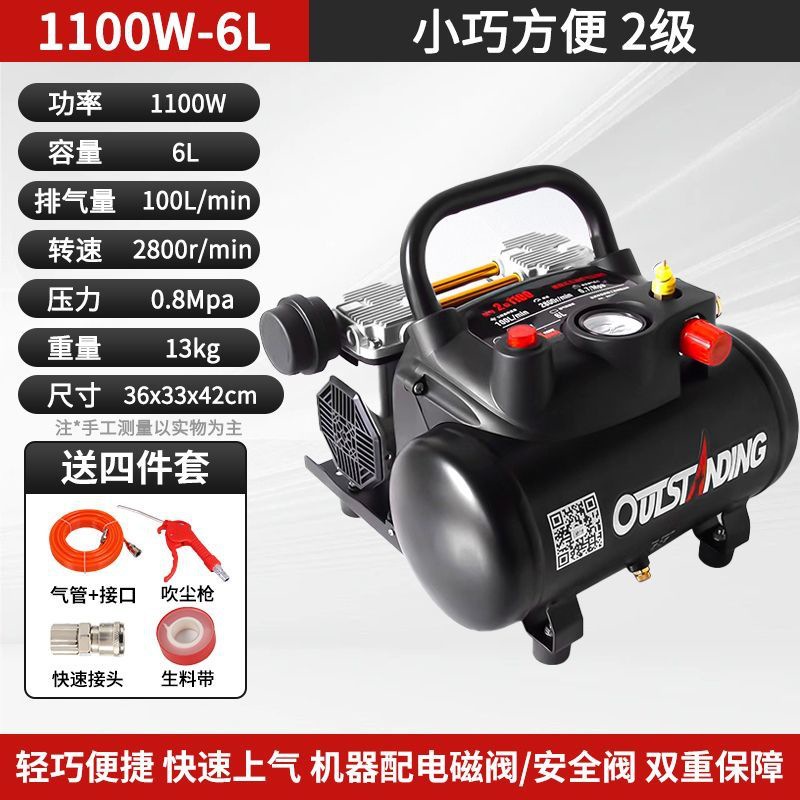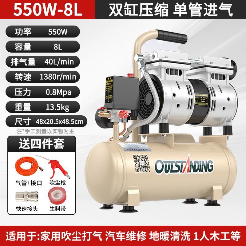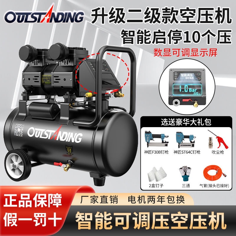 Otus 공기 압축기 작은 2 차 강력한 공기 펌프 기름없는 음소거 220V 가스 실제 석재 페인트 목공 네일 건