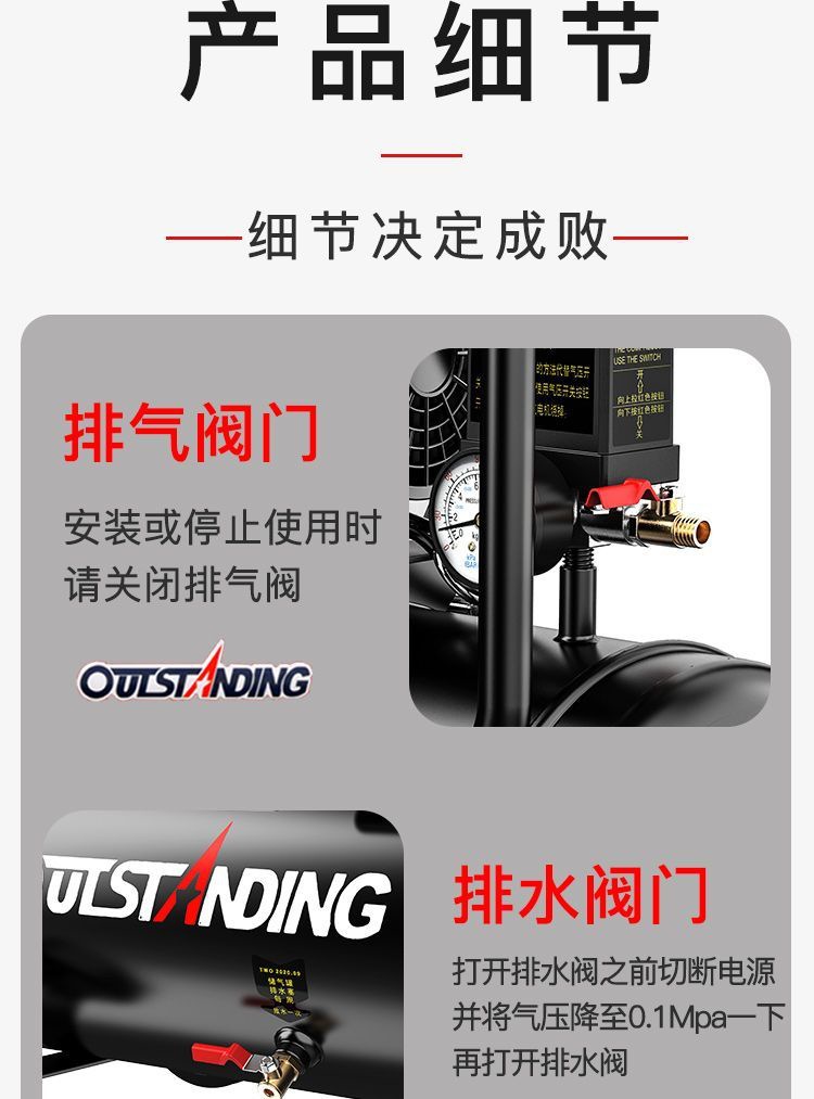 Otus 공기 압축기 작은 2 차 강력한 공기 펌프 기름없는 음소거 220V 가스 실제 석재 페인트 목공 네일 건스토어 가기