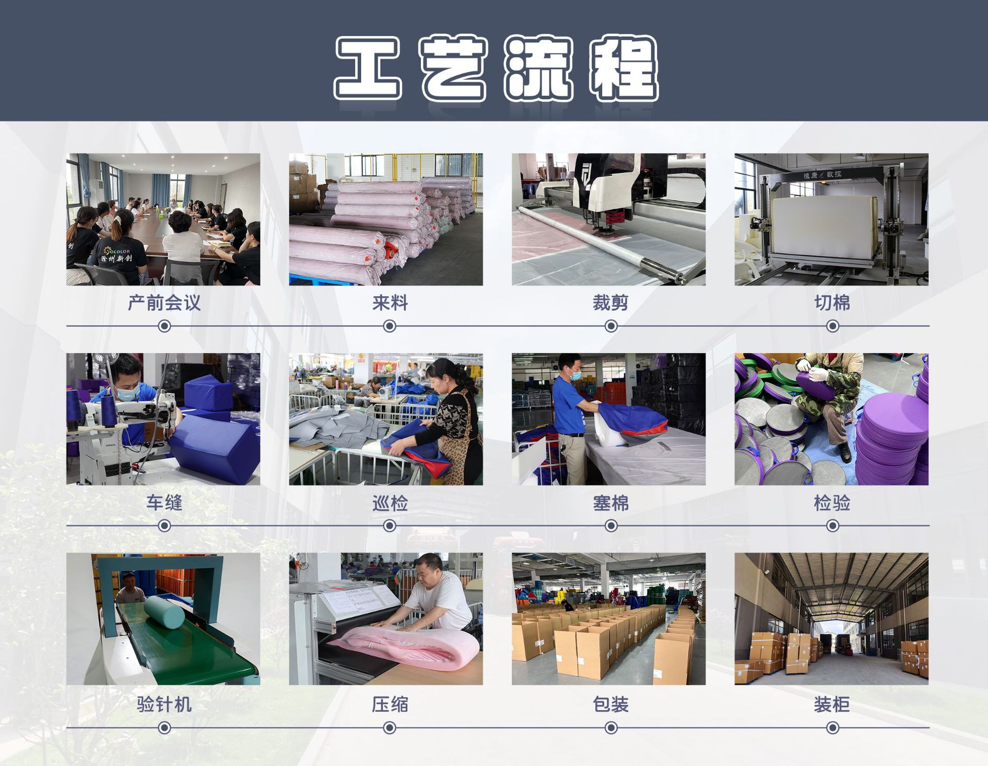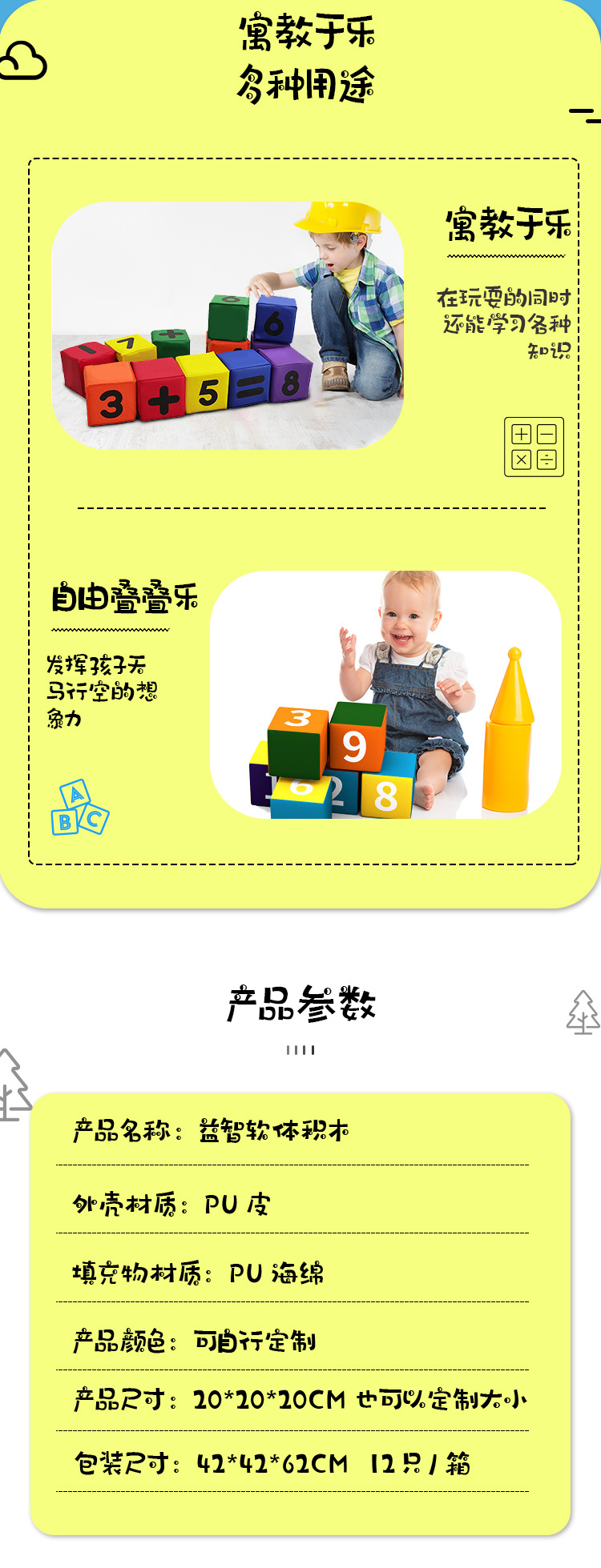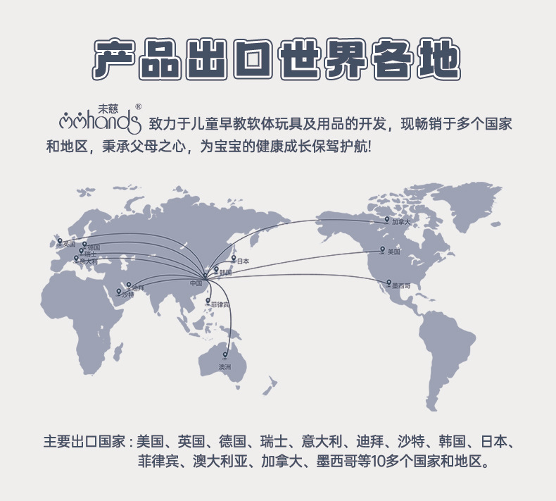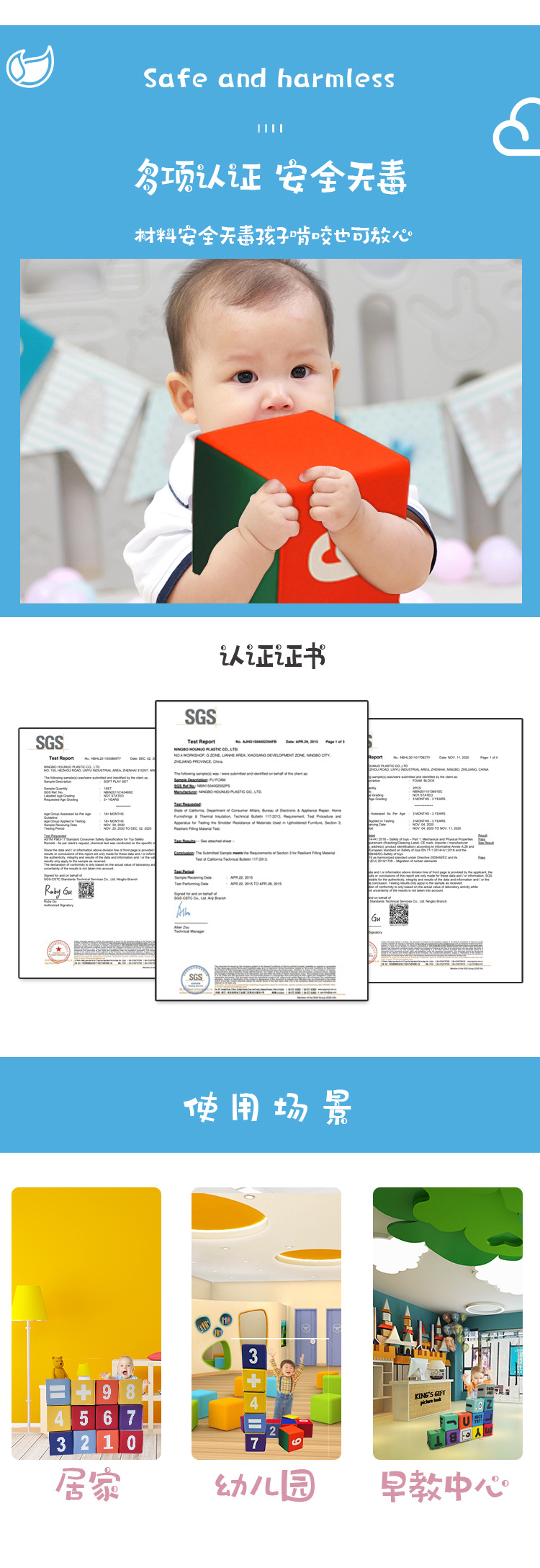 我厂是一家拥有丰富经验的专业制造商,十多年来一直专注于儿童早期教育软体游戏产品的技术和工艺:工厂占地24400㎡,员工300余人,拥有一流的生产车间和先进的生产、检测设备,专业的管理团队和一套运作完善、高效、执行力强的管理体系。 所完成的设计、生产和制造过程,均秉承父母之心,为宝宝的健康成长保驾护航的理念。 而这一切,仅仅是开始。