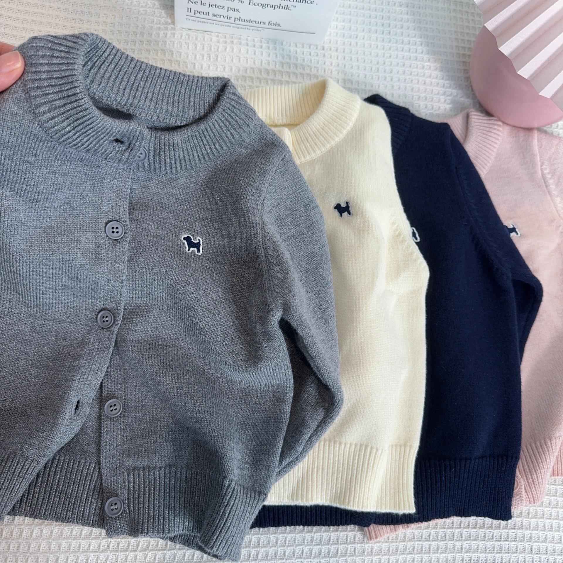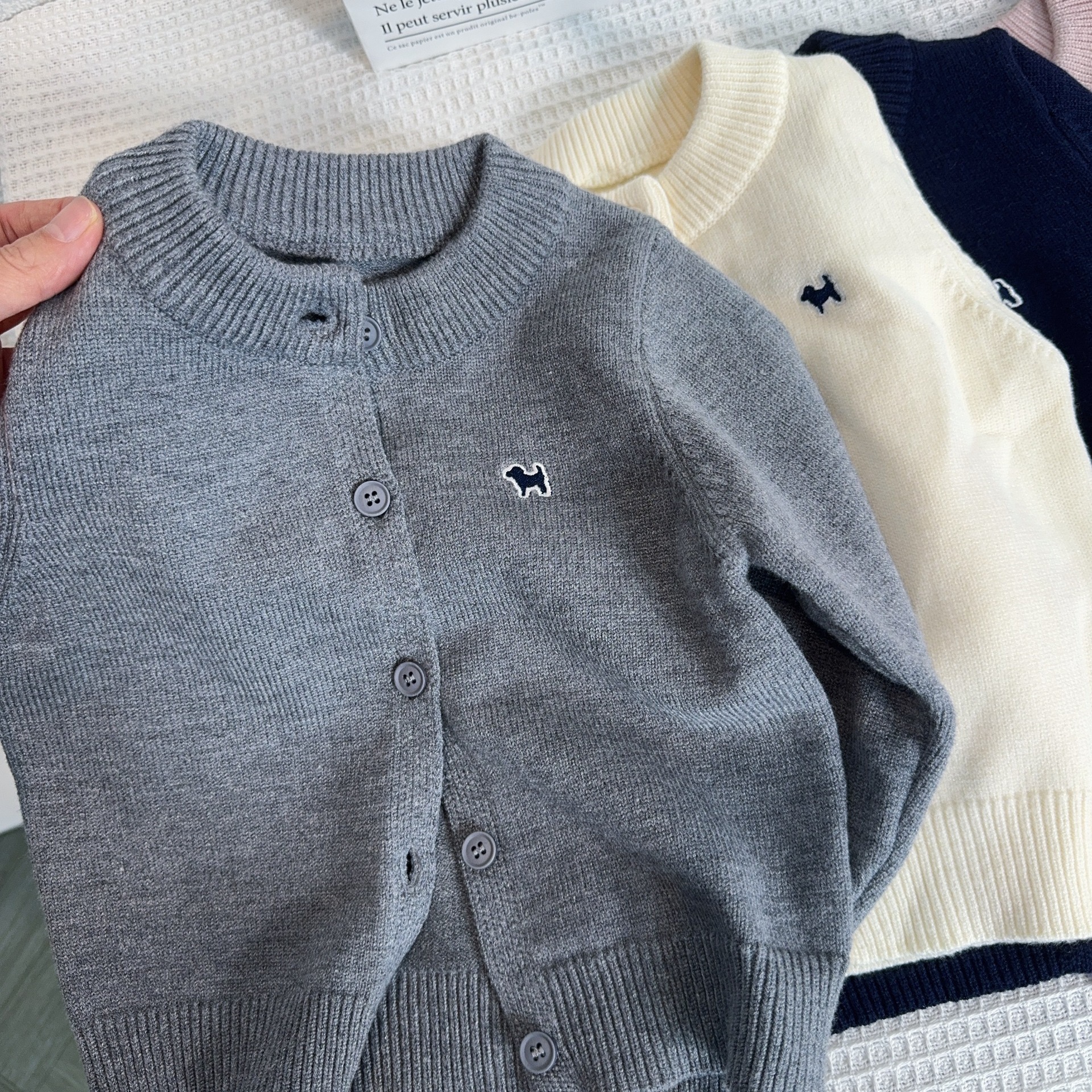 여자 소년 니트 카디건 2024 가을 새 어린이 한국 루즈 탑 세련된 자수 스웨터 재킷스토어 가기