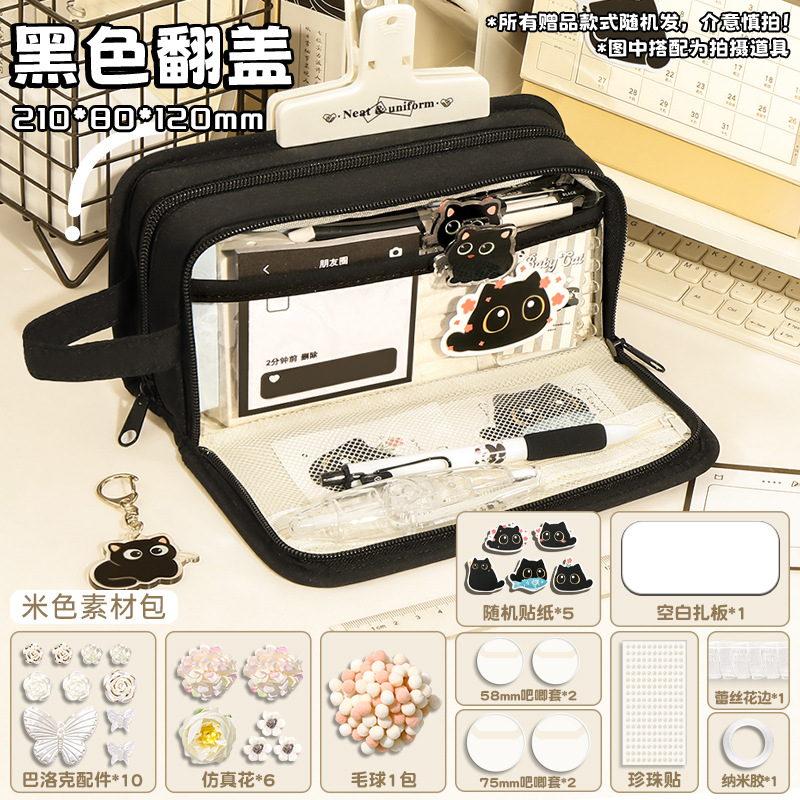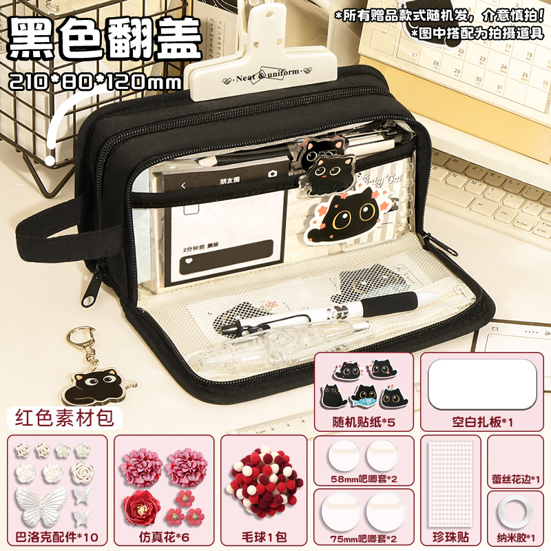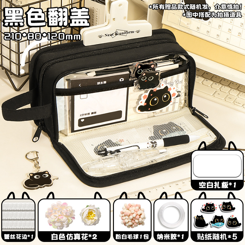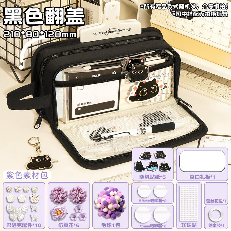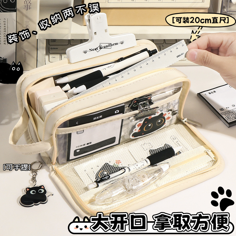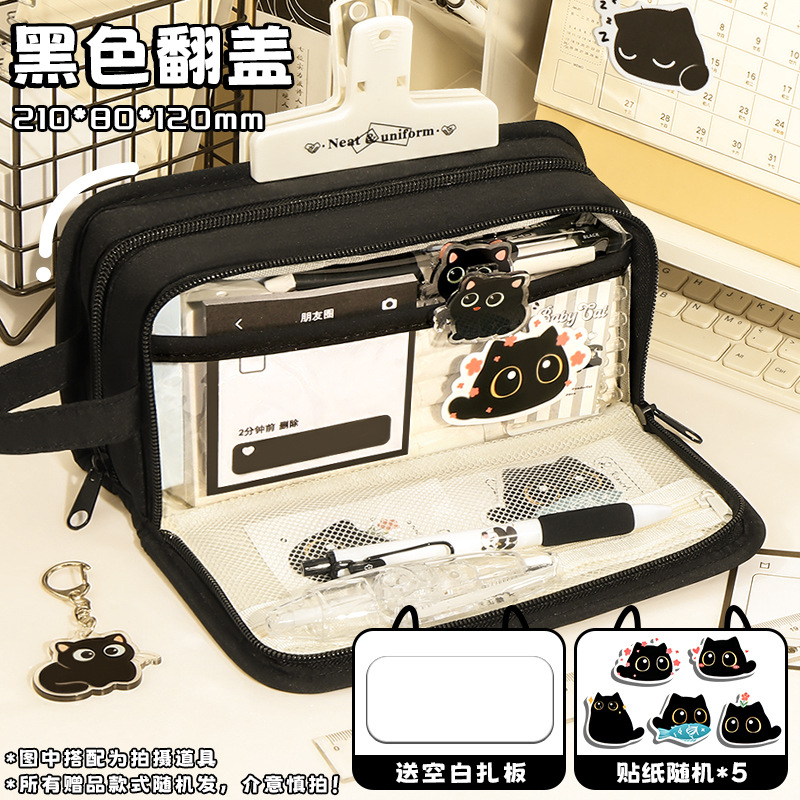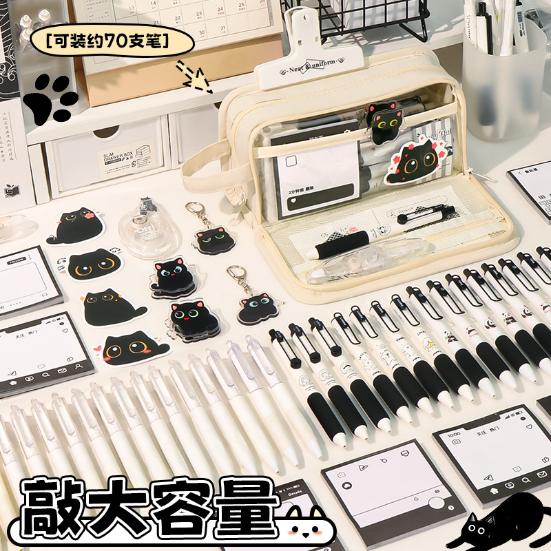 신비한 작은 검은 야옹 ~ 용량 투명 연필 케이스 소녀 2024 새로운 문구 상자 소녀 고등학교 초등학생