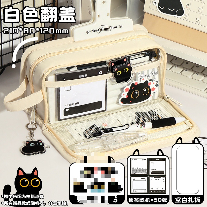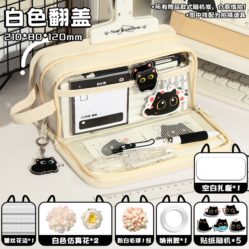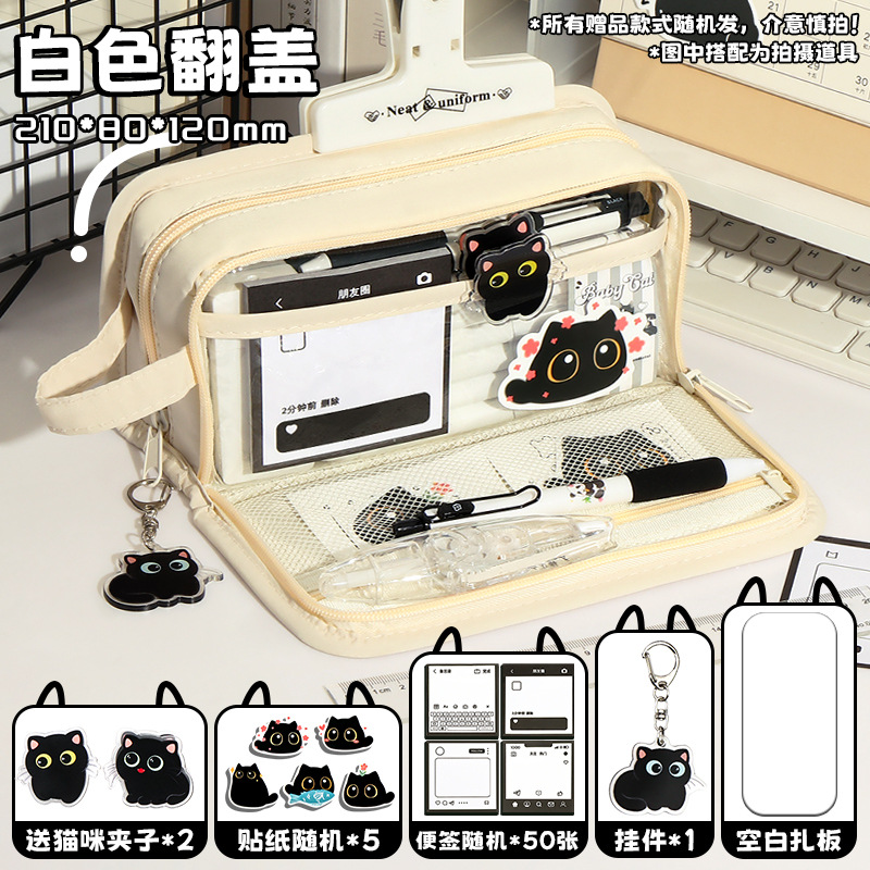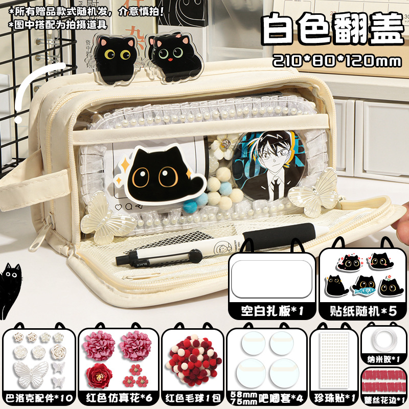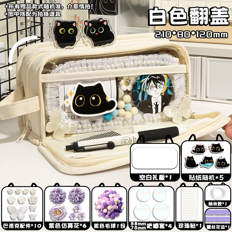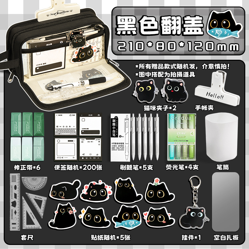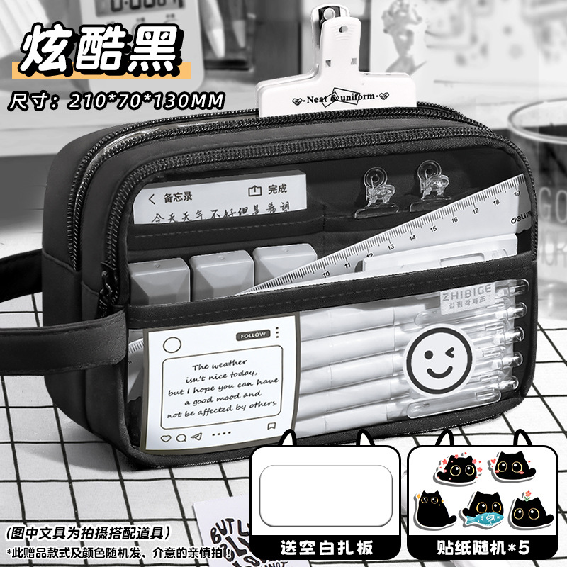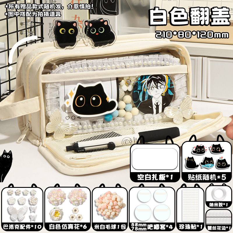 신비한 작은 검은 야옹 ~ 용량 투명 연필 케이스 소녀 2024 새로운 문구 상자 소녀 고등학교 초등학생