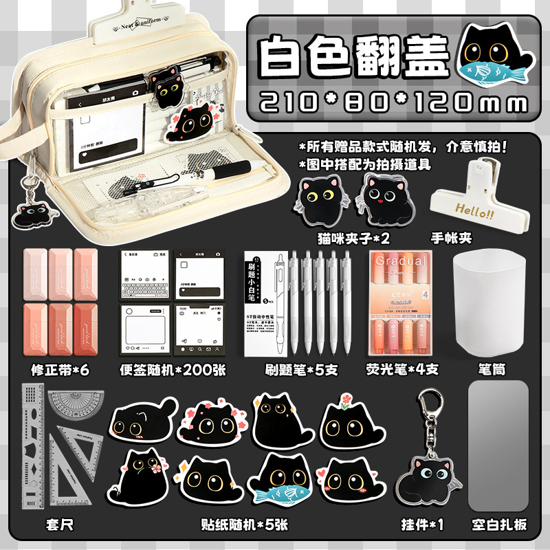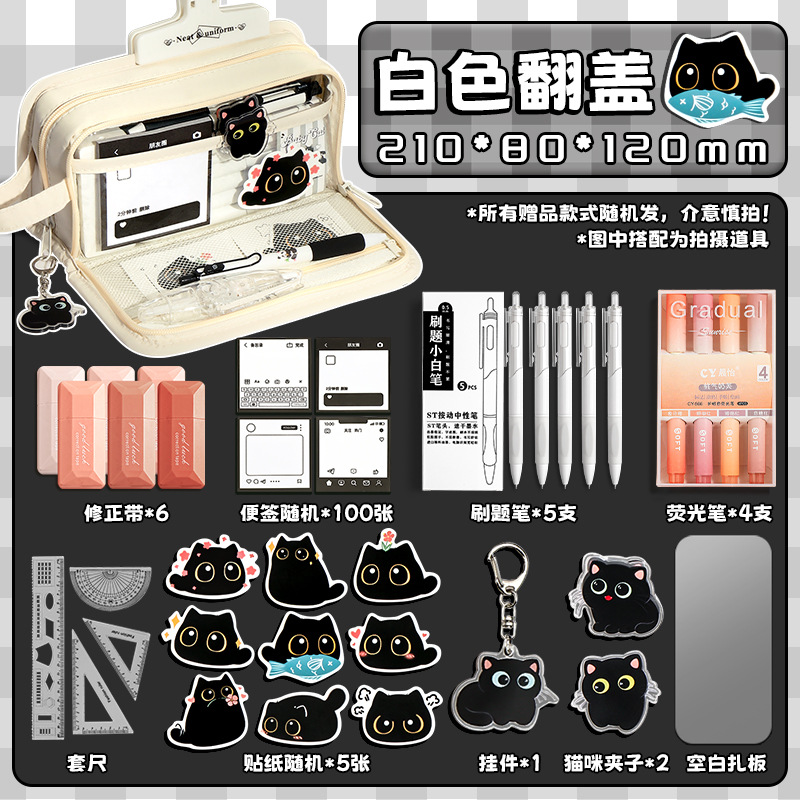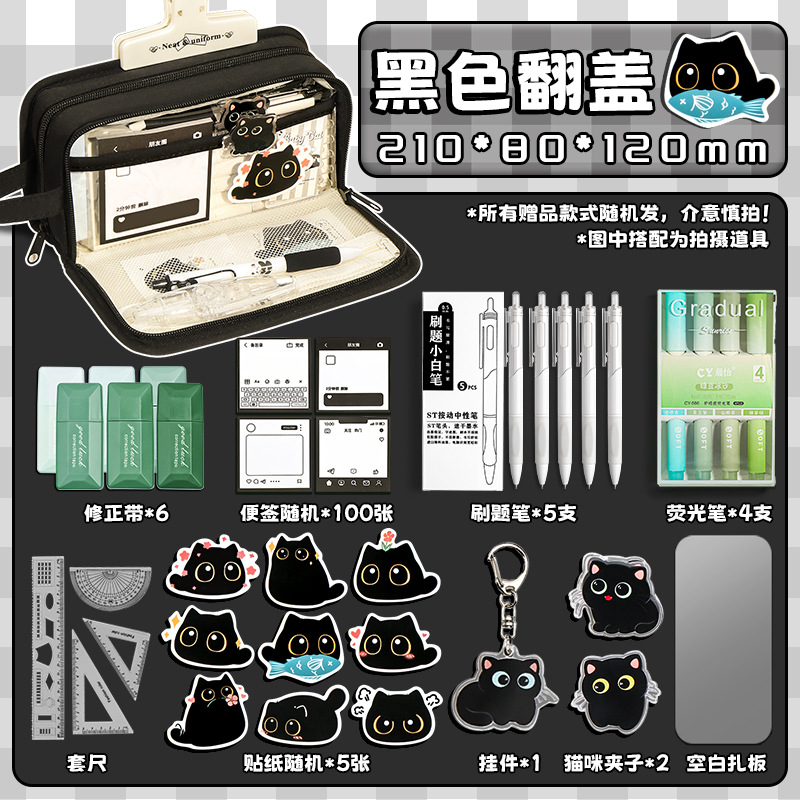 • [고급 학습 세트] 블랙/무료 수정테이프 6개 + 질문 브러쉬 5개 + 형광펜 4개 + 하위 항목 133.2cm개 + 메모지 100개 + 고양이 클립 2개 + 펜던트 + 스티커 5개