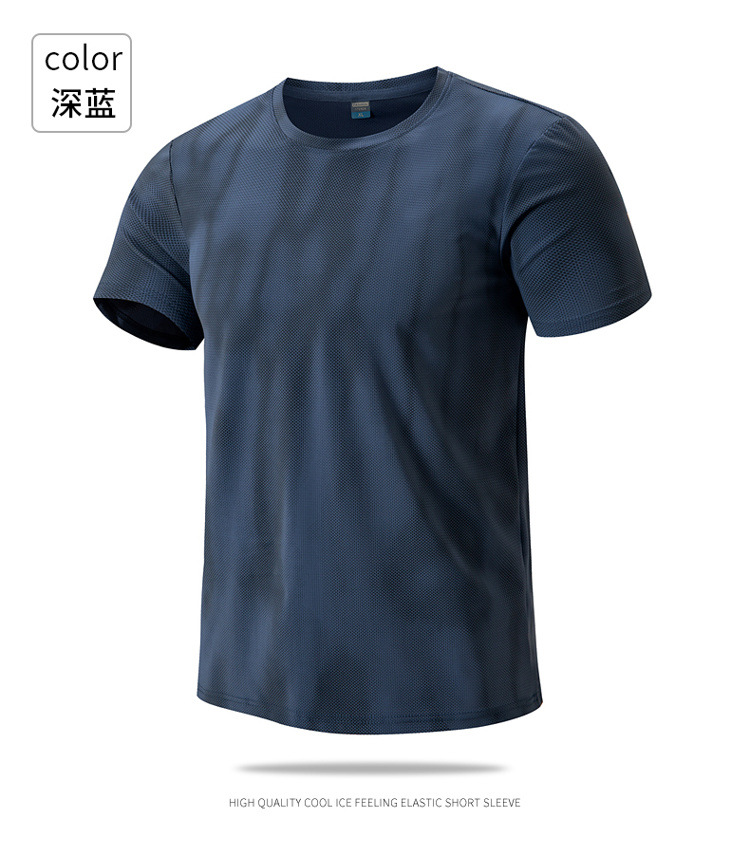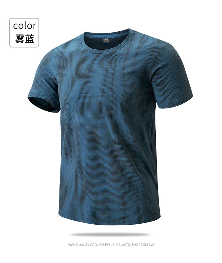 국경 간 남자 스포츠 티셔츠 여름 새로운 아이스 실크 반팔 티셔츠 남자 야외 자카드 빠른 건조 얇은 탑