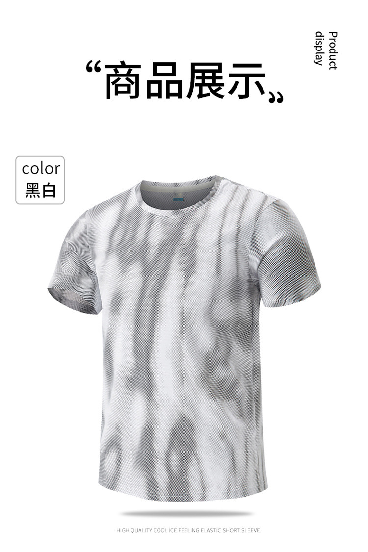 국경 간 남자 스포츠 티셔츠 여름 새로운 아이스 실크 반팔 티셔츠 남자 야외 자카드 빠른 건조 얇은 탑스토어 가기