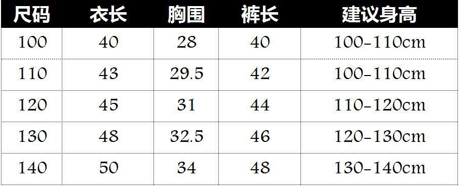 5个码数:100  110  120  130  140