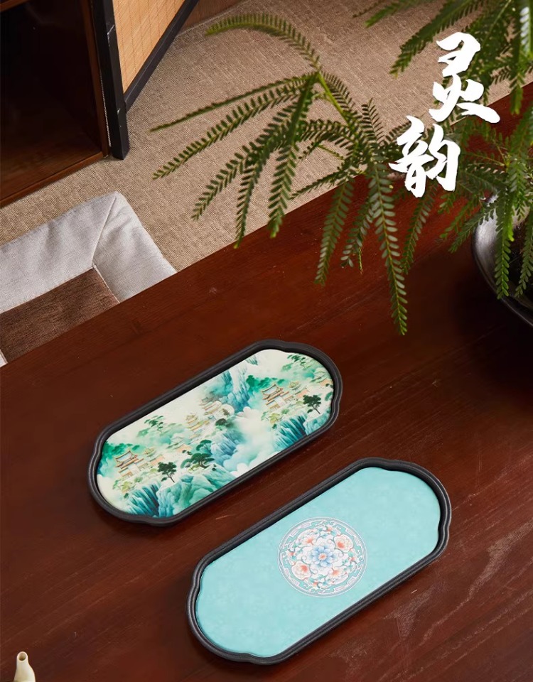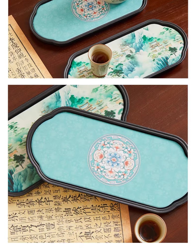 새로운 중국 스타일의 건식 거품 방수 차 트레이 레트로 작은 물 흡수 차 테이블 가정용 쿵푸 차 세트 포트 베어링 1 인 음주 트레이