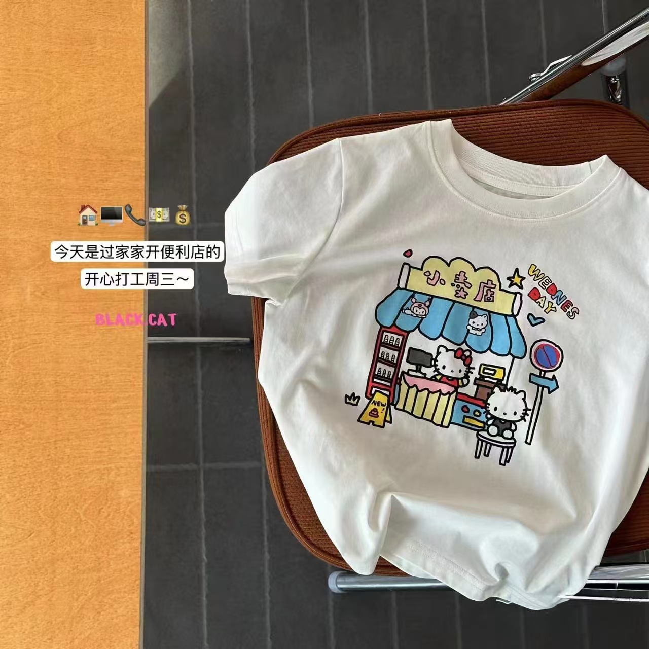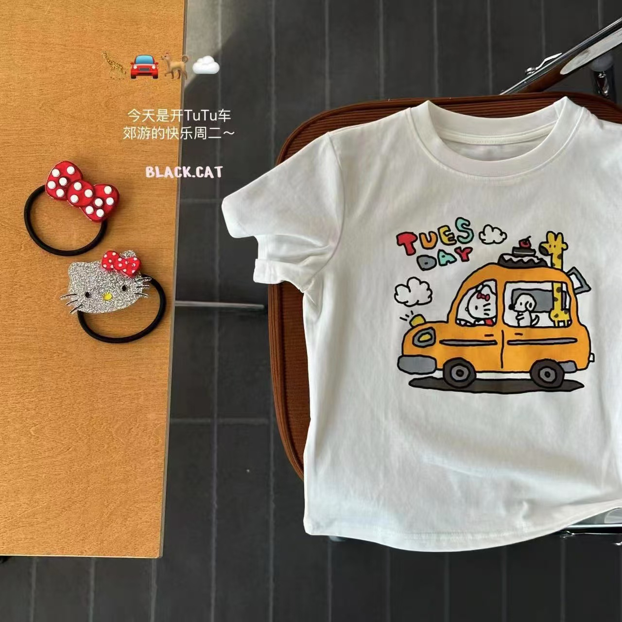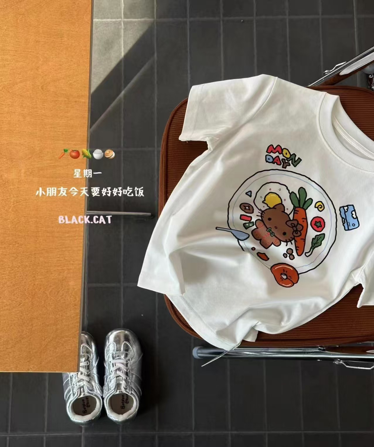 [클리어아웃 스페셜! 반품 불가] 아동용 한국식 반팔 티셔츠 아동복 소년 소녀 귀여운 만화 프린트 코튼스토어 가기