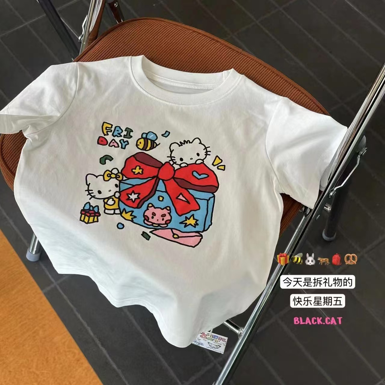 [클리어아웃 스페셜! 반품 불가] 아동용 한국식 반팔 티셔츠 아동복 소년 소녀 귀여운 만화 프린트 코튼