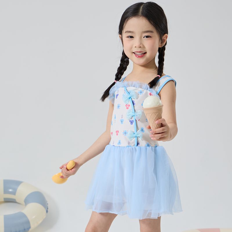신선한 메쉬 활 소녀 수영 어린이 귀여운 빠른 건조 수영복 여름 여행 푹신한 공주 원피스
