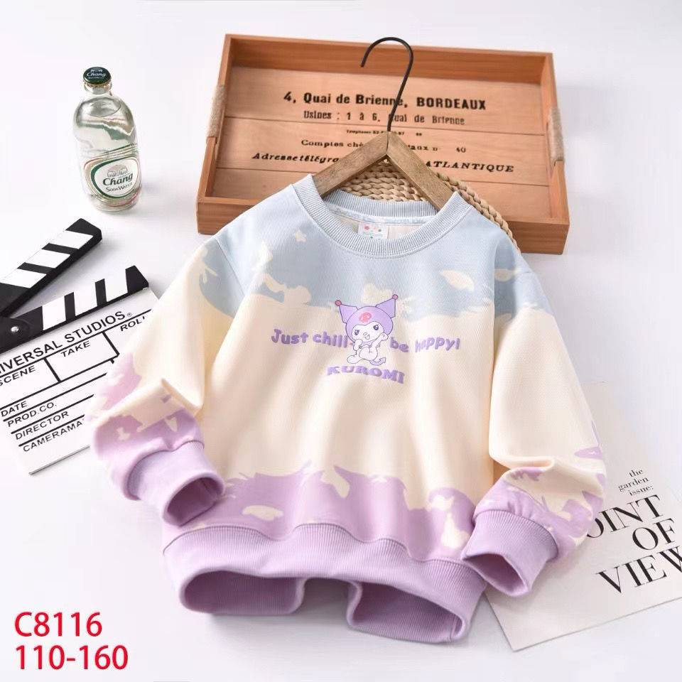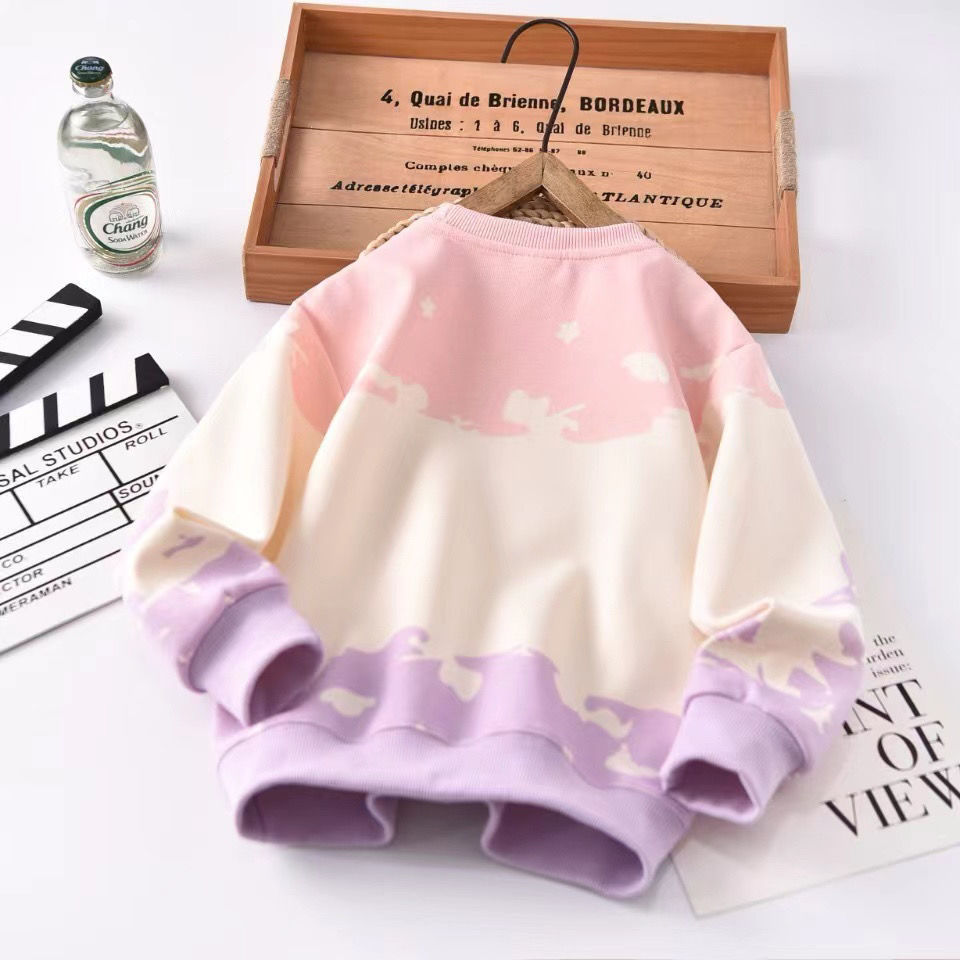 새로운 봄과 가을 만화 Kulomi 얇은 타이 다이 스웨트 셔츠 긴팔 스타일 어린이 최고 올매치 트렌디스토어 가기
