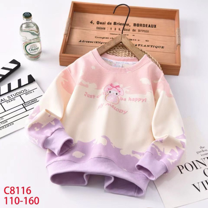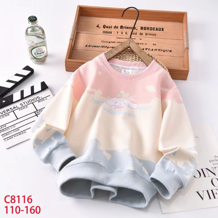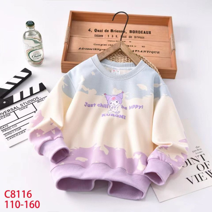 새로운 봄과 가을 만화 Kulomi 얇은 타이 다이 스웨트 셔츠 긴팔 스타일 어린이 최고 올매치 트렌디
