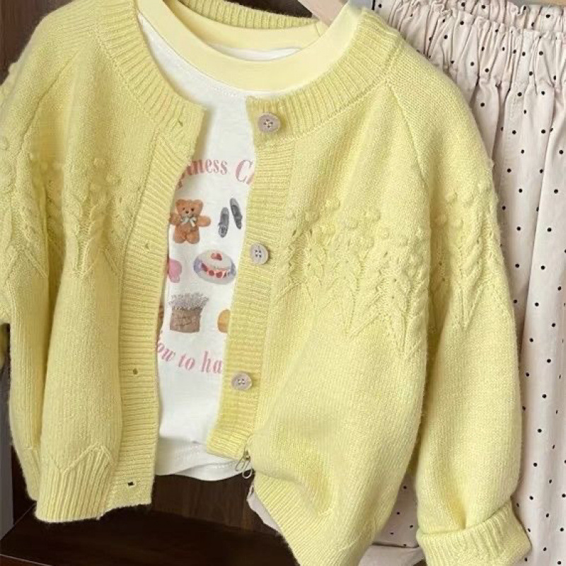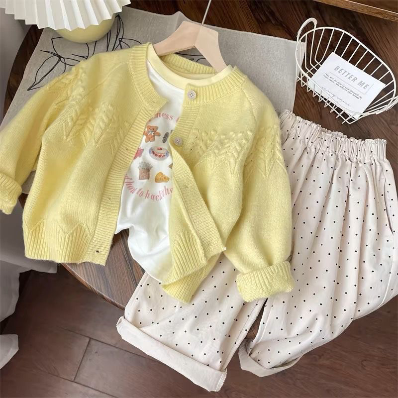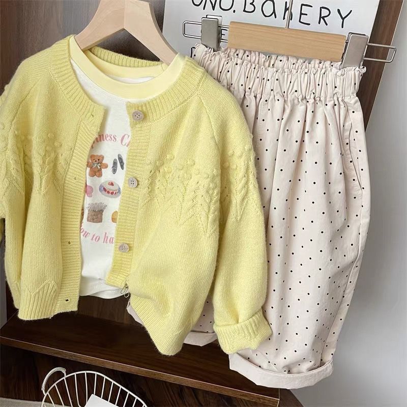 소녀의 봄 원피스 세트 2025 새로운 봄 한국 스타일 서양식 아기 소녀의 니트 스웨터 패션 어린이 3 피스 세트스토어 가기