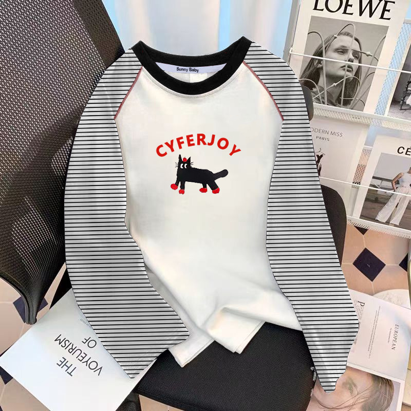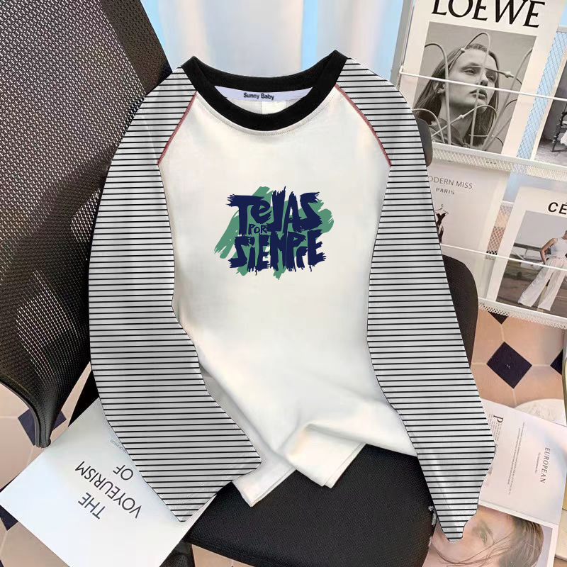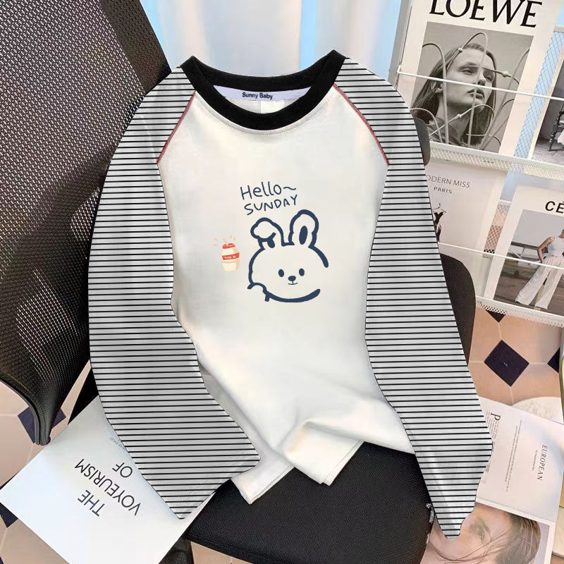 아동면 바느질 줄무늬 긴팔 티셔츠 여성 중대형 어린이 캐주얼 루즈 패션 올매치베이스 셔츠 탑 트렌디스토어 가기