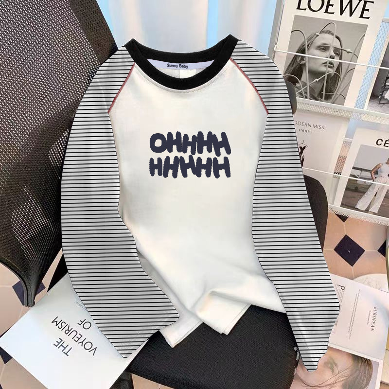 아동면 바느질 줄무늬 긴팔 티셔츠 여성 중대형 어린이 캐주얼 루즈 패션 올매치베이스 셔츠 탑 트렌디